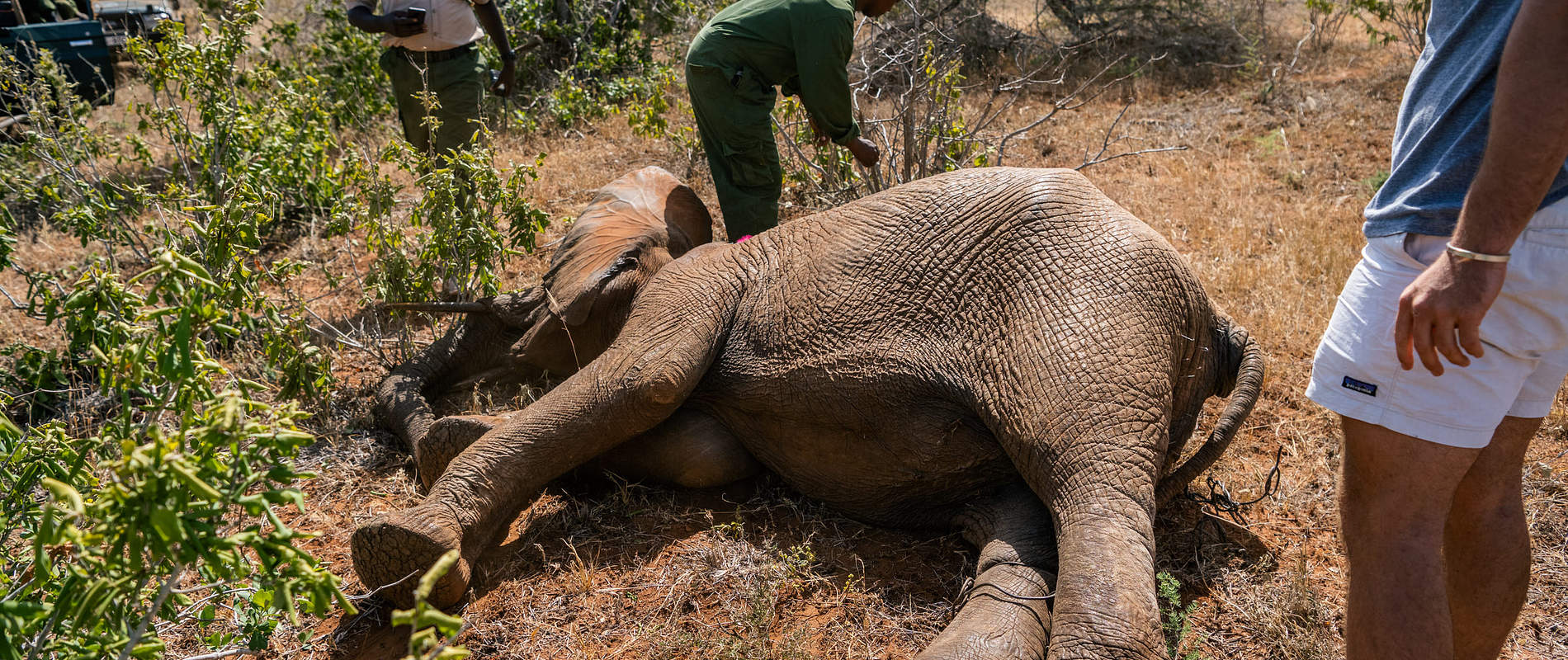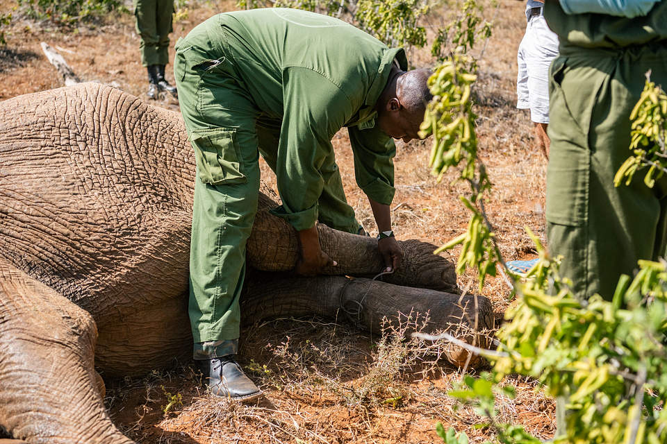 Approaching an injured elephant, especially one in pain, was risky. Elephants are naturally protective of their space, and the bull, despite being hurt, was still a formidable force. The team had to act with the utmost caution—any signs of aggression or panic could escalate the situation and endanger everyone involved.
