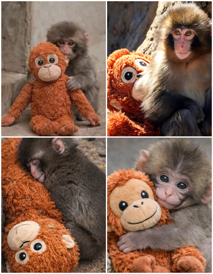 When Little Punch the baby Japanese macaque suddenly lost contact with his mother after a stressful separation event at the zoo, he became visibly terrified and refused to eat or interact with his surroundings for an extended period. In response, dedicated keepers quickly searched for a solution and introduced a soft, cuddly stuffed toy designed to mimic the feel of maternal closeness, hoping it would provide some temporary relief to the distressed infant. To their amazement, the little monkey immediately embraced the toy with all his strength, holding it close as if it were a lifeline that could replace the security he had lost, and within days his appetite returned and his anxious pacing began to slow.