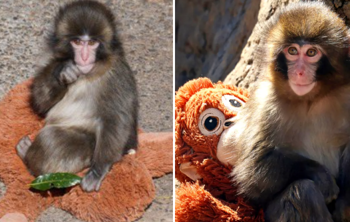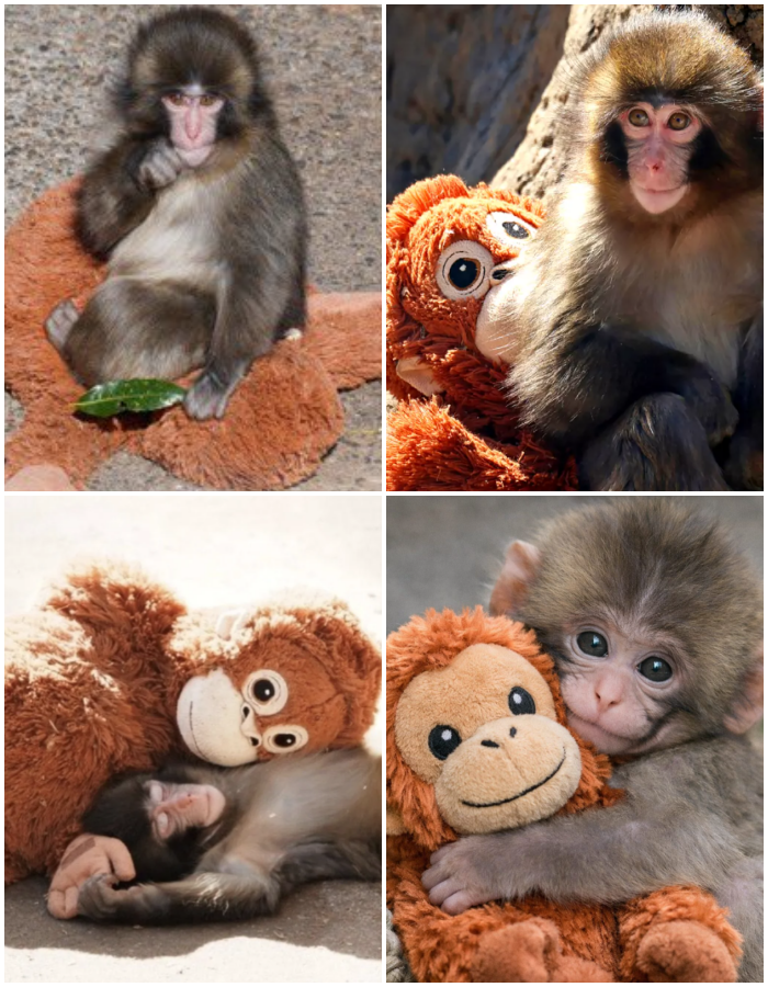 Little Punch, a young Japanese macaque who had been separated from his mother during a zoo transfer, spent his first days in the new enclosure huddled in a corner, visibly frightened and unwilling to engage with anything around him. Zookeepers, concerned about his declining health, decided to introduce a soft stuffed toy into his space as an experimental comfort measure, and the response was immediate and heartfelt as the baby monkey grabbed the plush item and refused to let go. Over the next several weeks, the toy became his constant companion, providing the physical warmth and emotional anchor he needed to begin healing from the trauma of separation and slowly regain his natural curiosity about the world.