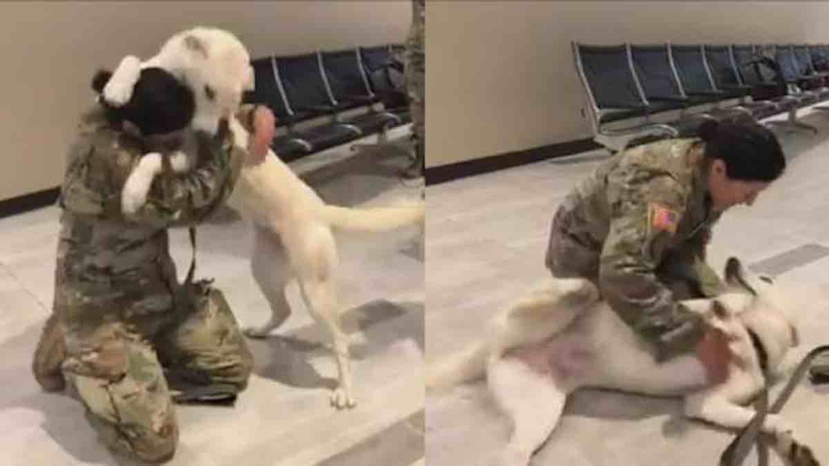 As the soldier walked into the room, the dog immediately recognized its owner. The joy and love that filled their eyes spoke louder than words ever could. The pup’s tail wagged furiously, its body vibrating with excitement as it rushed into the soldier’s arms. The bond between them was undeniable, and in that moment, nothing else mattered.