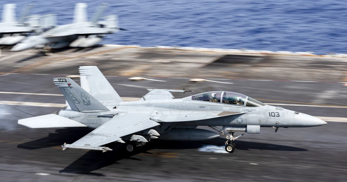 In one of the most demanding maneuvers in aviation, a U.S. Navy F/A-18C Hornet attempts a high-intensity landing on an aircraft carrier—an operation that leaves no room for error.