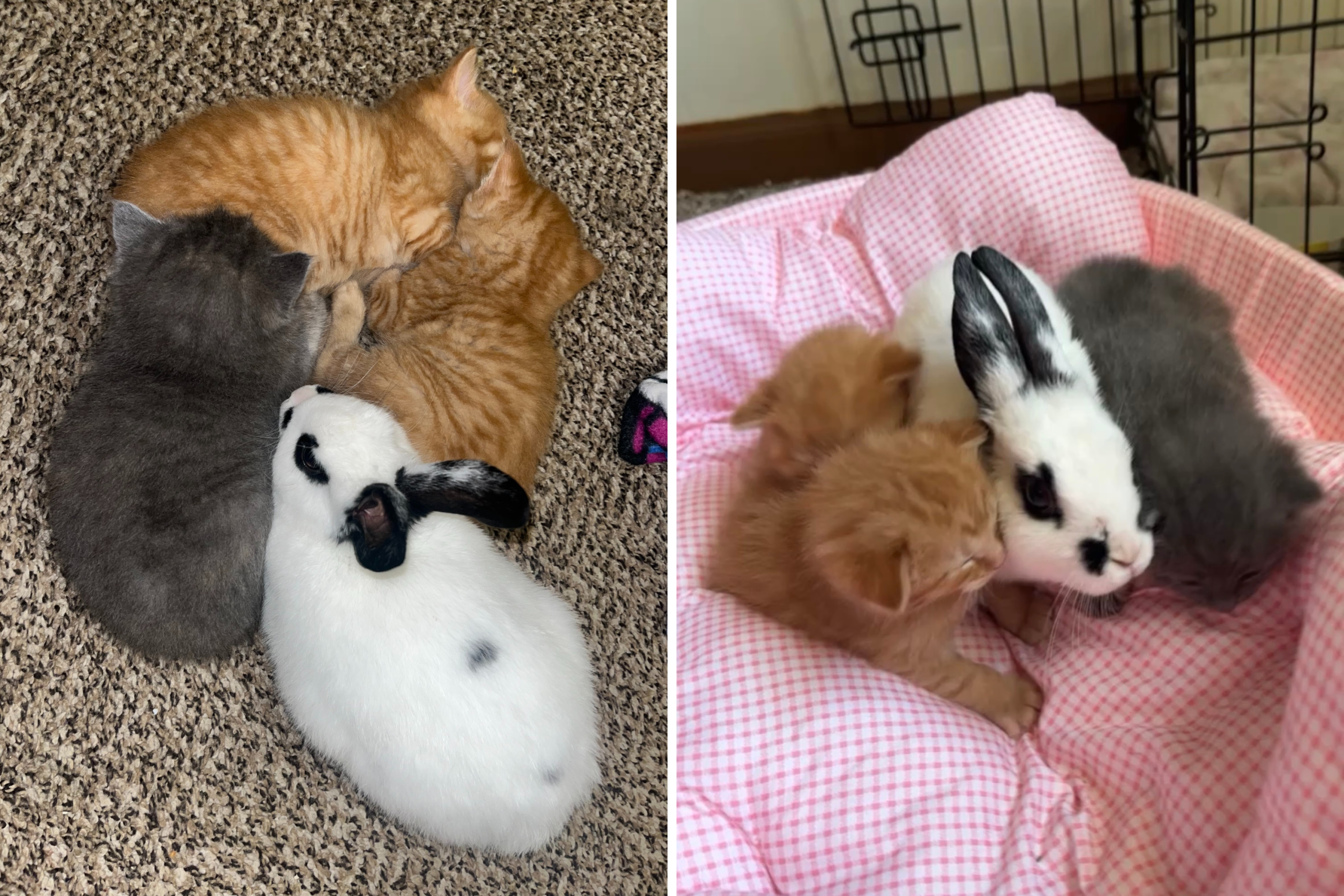 The rabbit, meanwhile, seems just as content with its unusual family, fitting in perfectly among the kittens. This cute and hilarious mix-up is a reminder that love and family don’t need to follow the rules—they simply exist.