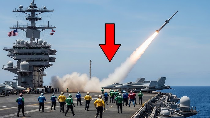 Hidden Massive Missile Launcher Rising from Inside an Aircraft Carrier Deck