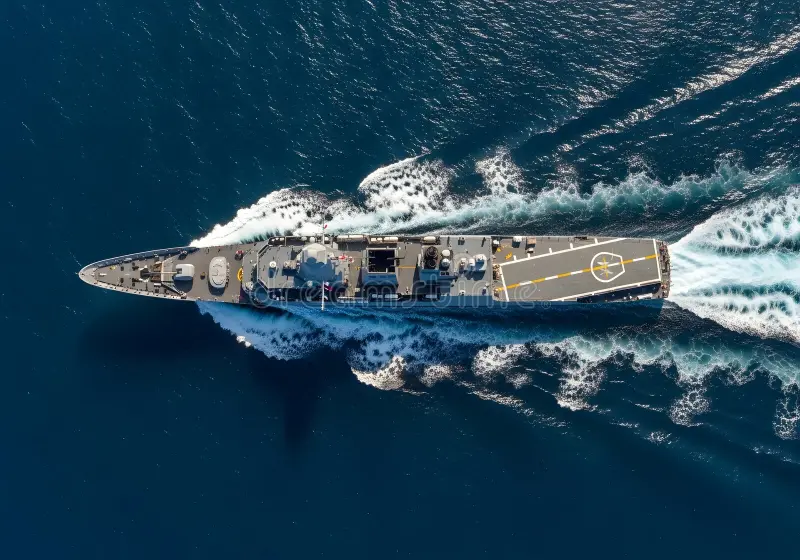 High-altitude aerial Raw shot of a massive naval armada