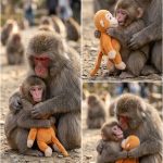 We all reach for comfort when life feels uncertain. People do it with blankets, old shirts, pillows, favorite songs, and familiar places. This little monkey just happened to reach for an orange plush toy, and somehow that made the emotion even easier to see.