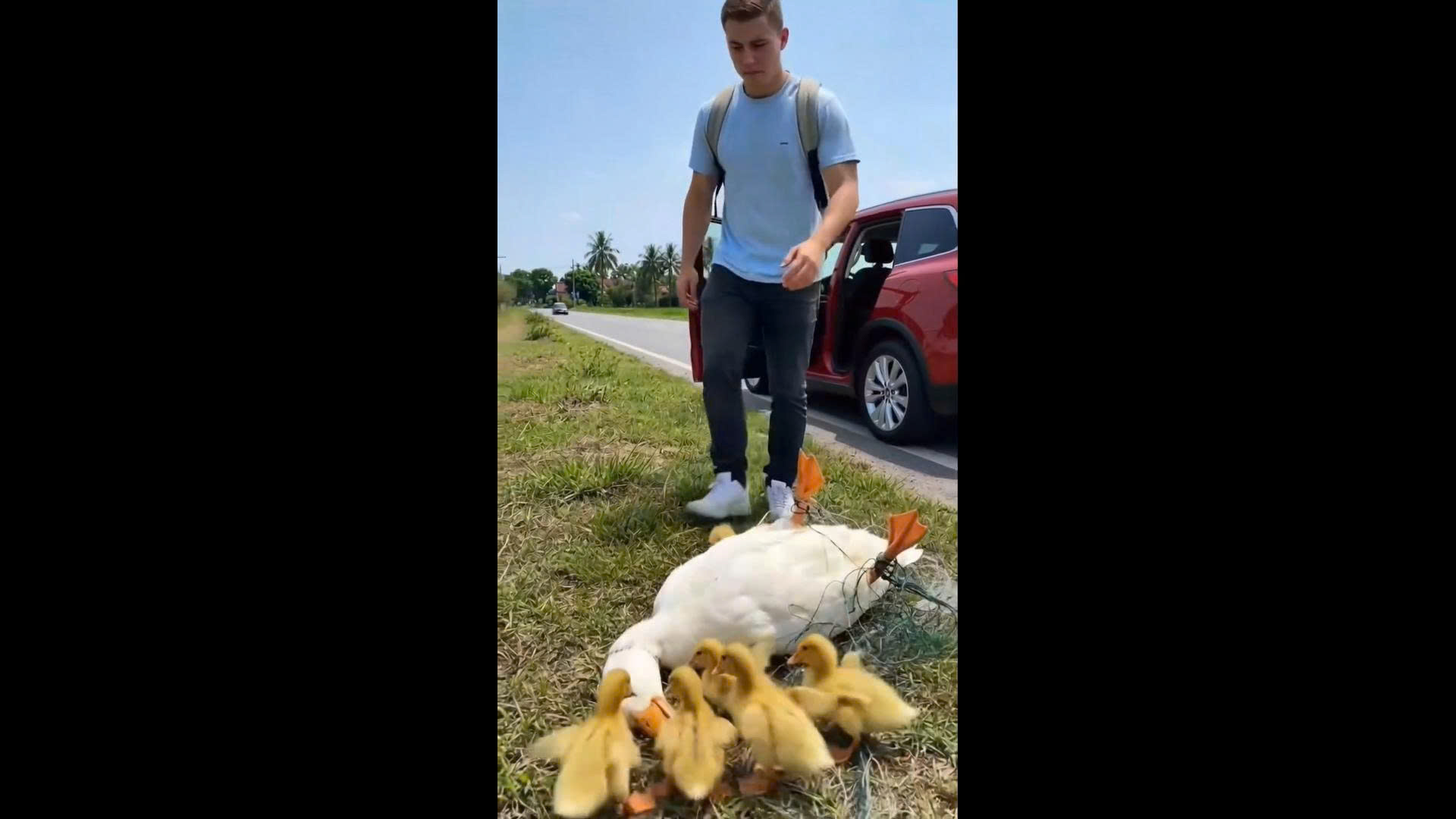 In a heartwarming and emotional rescue story, a kind stranger steps in to save a mother duck and her precious ducklings. The moment unfolds on a quiet, rural road, where the mother duck finds herself trapped in an unfortunate situation, unable to reunite with her babies. Her desperation and fear are palpable, but help is on the way.