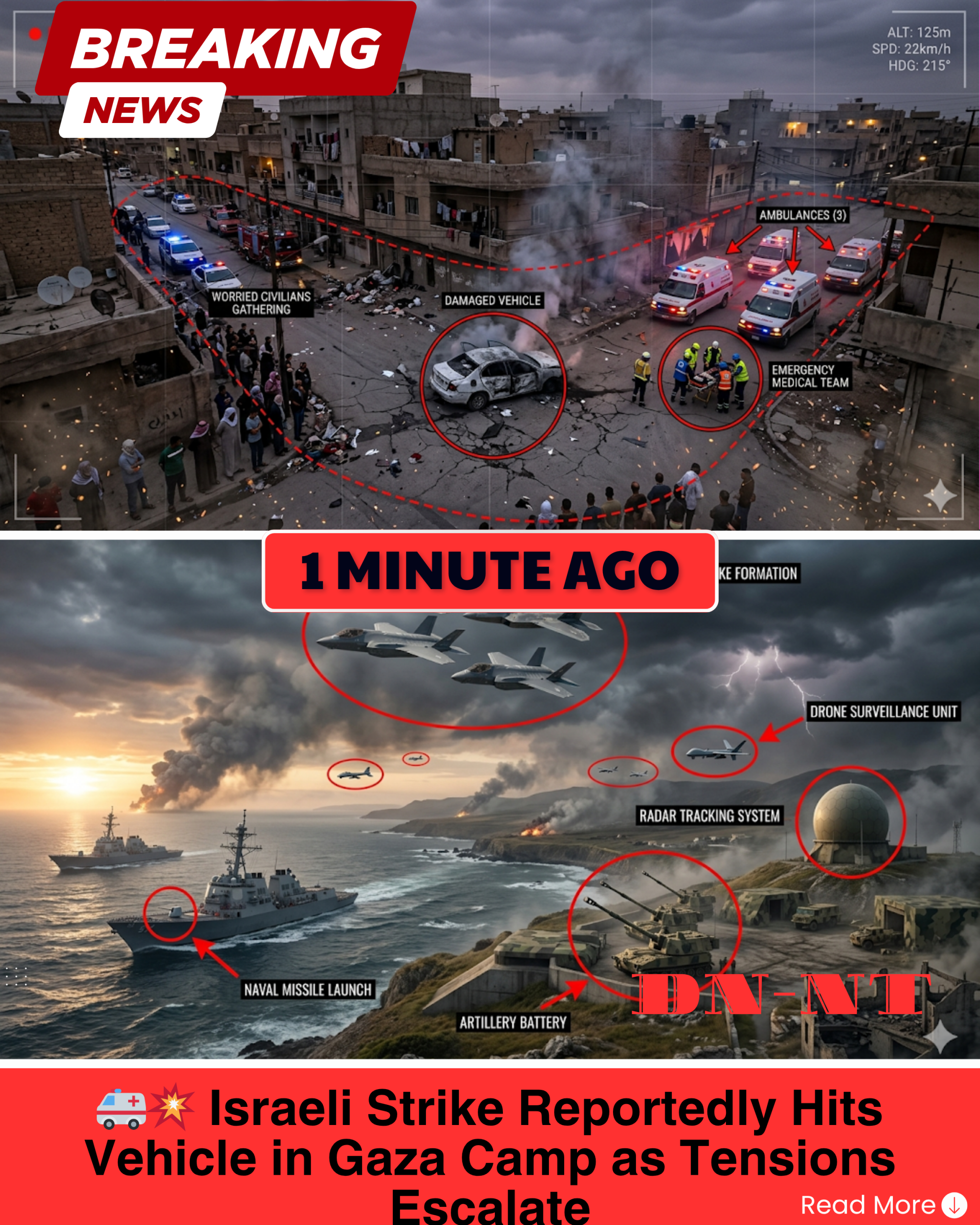 🚑💥 Israeli Strike Reportedly Hits Vehicle in Gaza Camp as Tensions Escalate