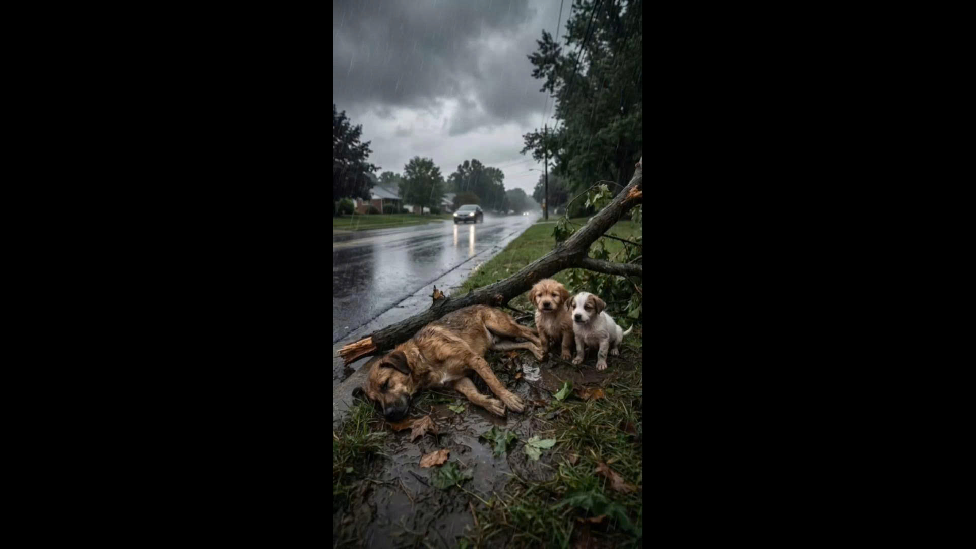 Seeing the vulnerable dog and her puppies in distress, he didn’t hesitate. Without a second thought, he rushed to the scene, lifting the fallen branch and freeing the unconscious mother. The rain didn’t stop him; his heart guided him to act with compassion and urgency.