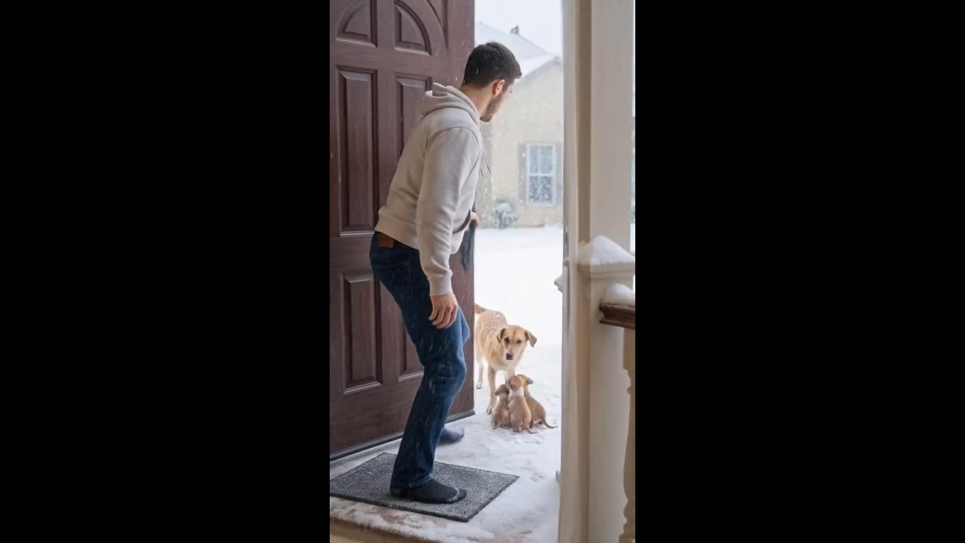 But then, a heartwarming act of compassion changed everything. Inside the warm home, someone saw the struggling family outside and immediately understood their need. The door was opened, and with a kind hand, the mother dog and her puppies were welcomed inside, offering them comfort, warmth, and a second chance at life.