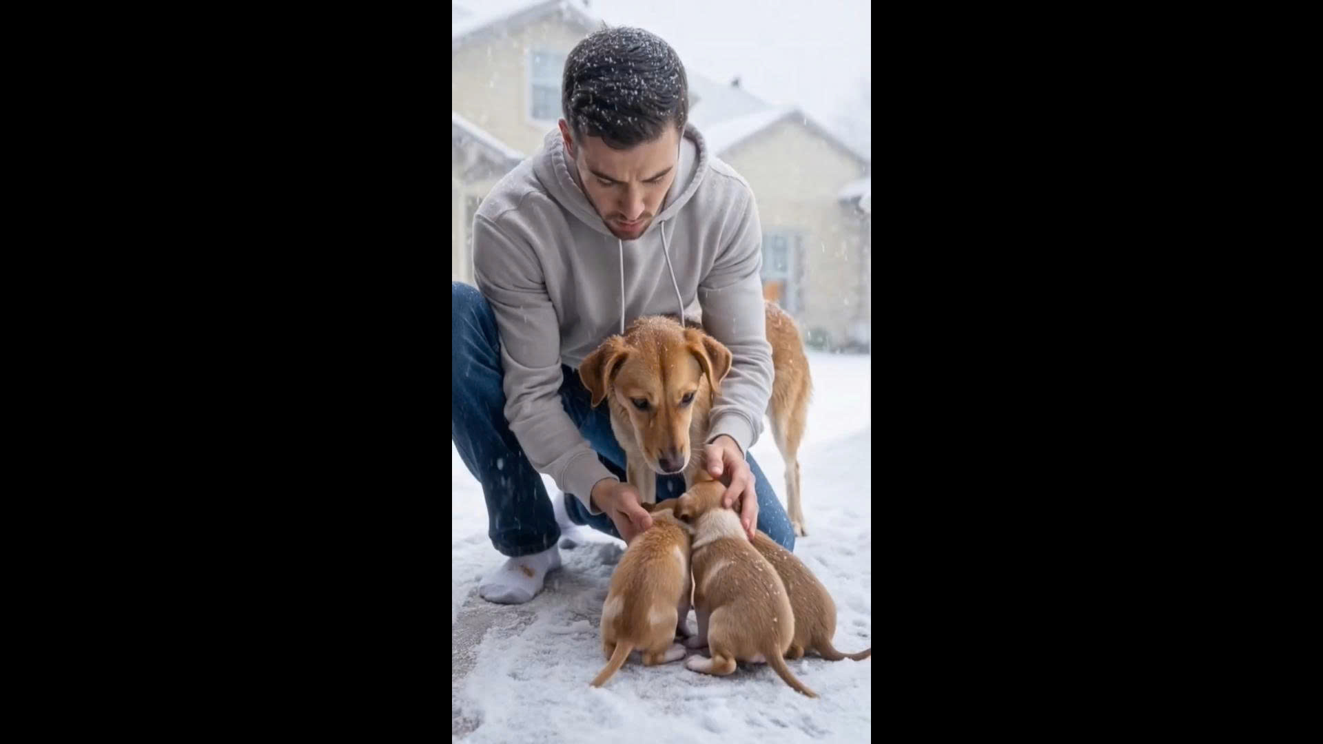 During a brutal snowstorm, where the winds howled and the cold was unforgiving, a desperate mother dog was found knocking on a window. Her three newborn puppies huddled close to her, shivering and vulnerable to the harsh weather. With no shelter and nowhere to turn, their chances of surviving the storm seemed slim.