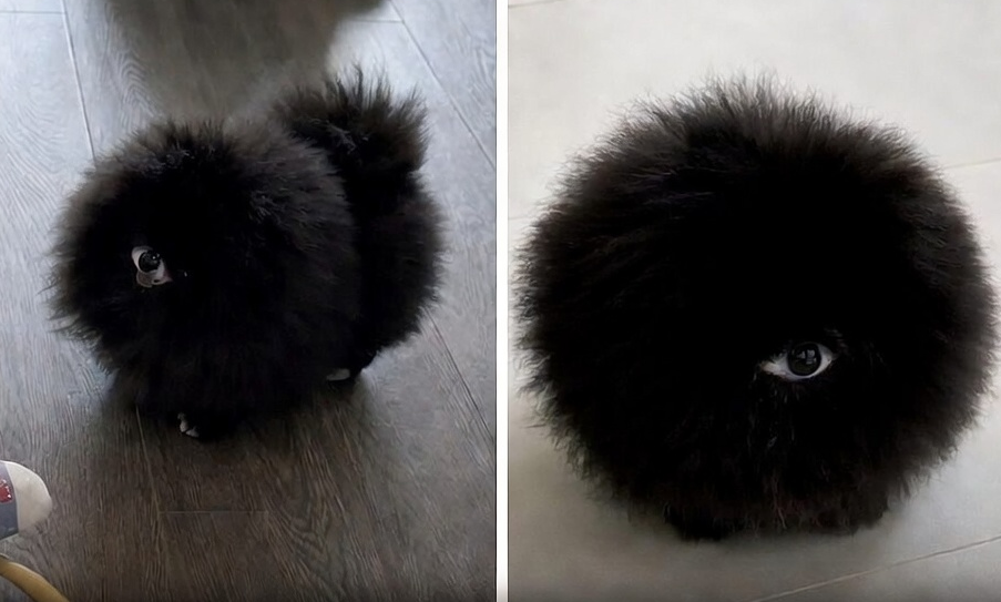 A small Pomeranian dog has captured worldwide attention after photographs revealed a striking optical illusion created by its exceptionally thick black fur, making it appear at first glance like a tiny alien creature with a single oversized eye. The images spread rapidly across social media, sparking widespread fascination and humorous commentary as viewers initially mistook the pet for something otherworldly.