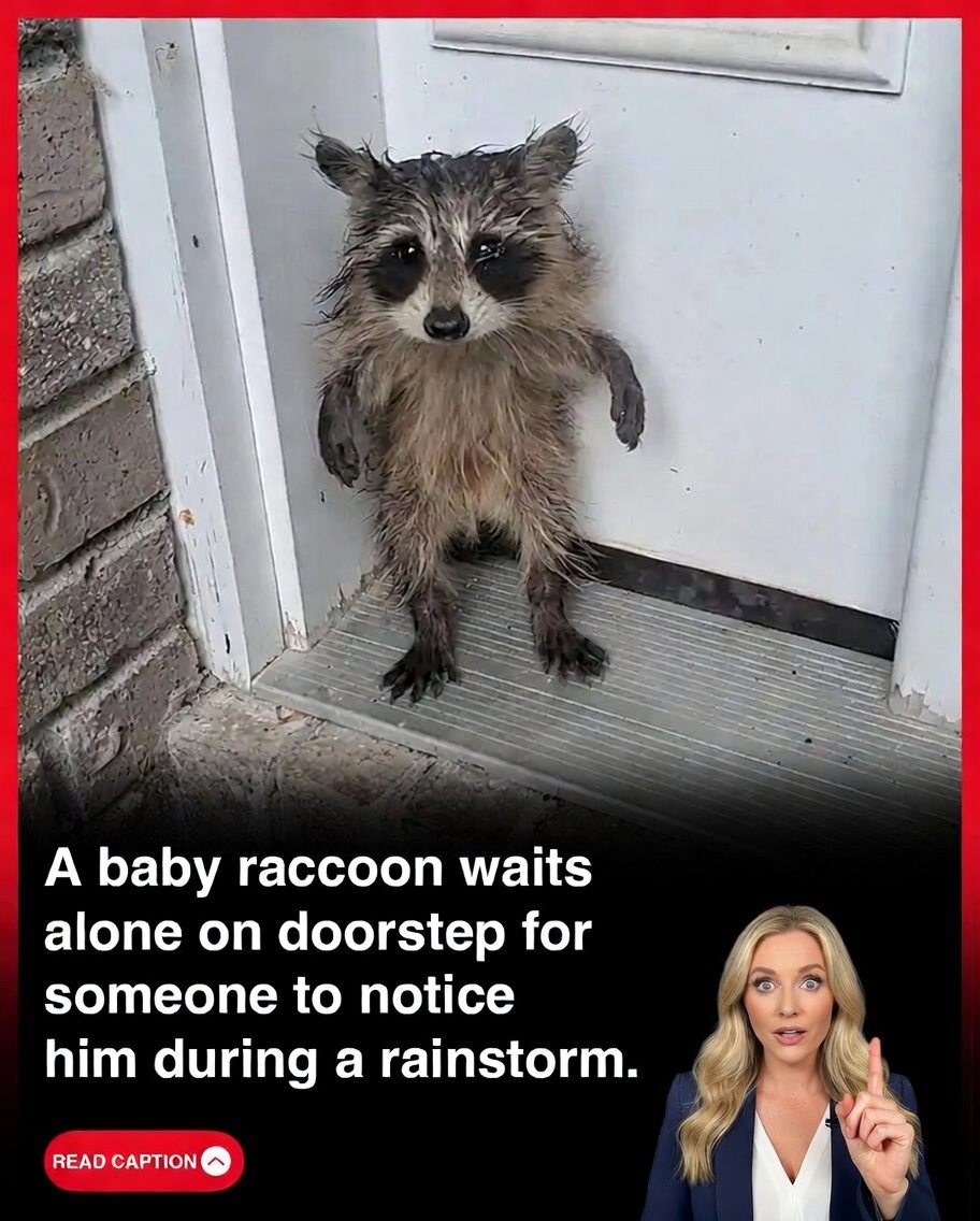 A young raccoon was discovered sitting quietly and patiently on a residential doorstep during a heavy rainstorm, appearing to wait for human assistance in what has become a poignant scene captured on video and shared widely online. The incident highlights the increasing vulnerability of urban wildlife as cities expand into former natural habitats, forcing animals to navigate environments dominated by human activity and infrastructure.