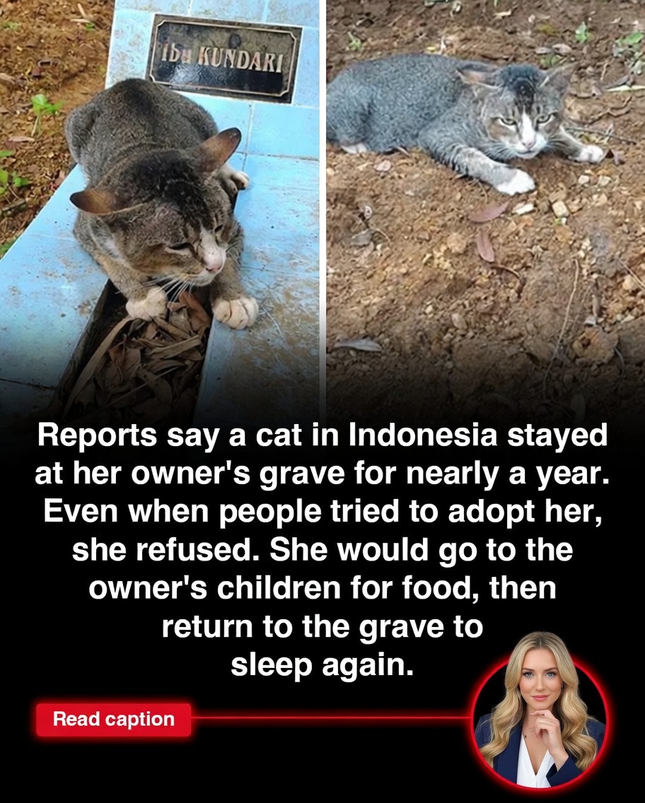 A cat in Indonesia has maintained a steadfast vigil at her deceased owner’s grave for nearly a full year, returning each evening to sleep beside the site despite repeated efforts by locals to provide her with a comfortable new home elsewhere. The animal only briefly leaves to eat before resuming her routine, a behavior observed with astonishment and deep respect by family members and neighbors who have documented her unwavering loyalty.