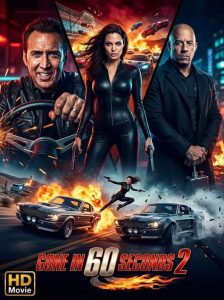 š Plot: Fifteen years after the legendary Eleanor heist, Memphis Raines (Nicolas Cage) has gone legit ā until a brutal new crime syndicate kidnaps his ex-partner Sway (Angelina Jolie) and forces him back into the game. To save her, Memphis must assemble the ultimate crew and pull off the impossible: steal 60 ultra-rare hypercars from the most secure vault in the world in under 60 minutes. Standing in his way is the ruthless enforcer Dominic Toretto-style kingpin (Vin Diesel) who plays by his own deadly rules. High-speed chases, explosive betrayals, and non-stop adrenaline from the streets of Los Angeles to the deserts of Nevada.