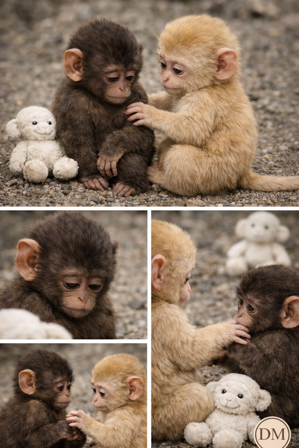 For a long time, the darker baby just watched. The toy didn’t move. The golden macaque didn’t move. The whole world seemed to pause just long enough for a decision to form.