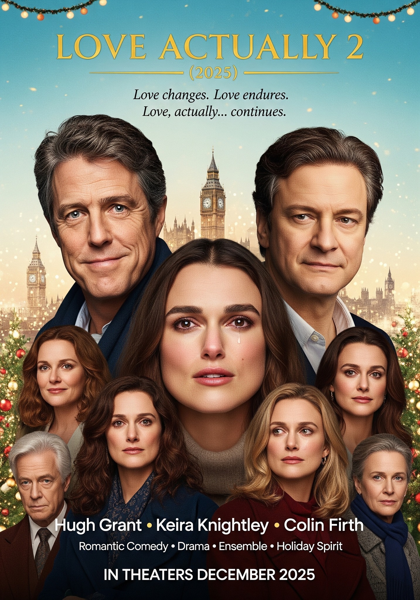 Hugh Grant reprises his role as the charming Prime Minister, now navigating the complexities of modern politics and romance, while Colin Firth faces unexpected twists in his pursuit of long-awaited happiness. Keira Knightley returns as Juliet, balancing career ambitions with the joys and challenges of family life. Emma Thompson’s poignant presence illuminates the beauty of enduring love, grief, and personal growth, while Bill Nighy brings his signature wit and heart as he continues to serenade audiences with unforgettable music. Laura Linney and Chiwetel Ejiofor portray couples whose stories remind us that love often appears in the most unexpected places and moments.