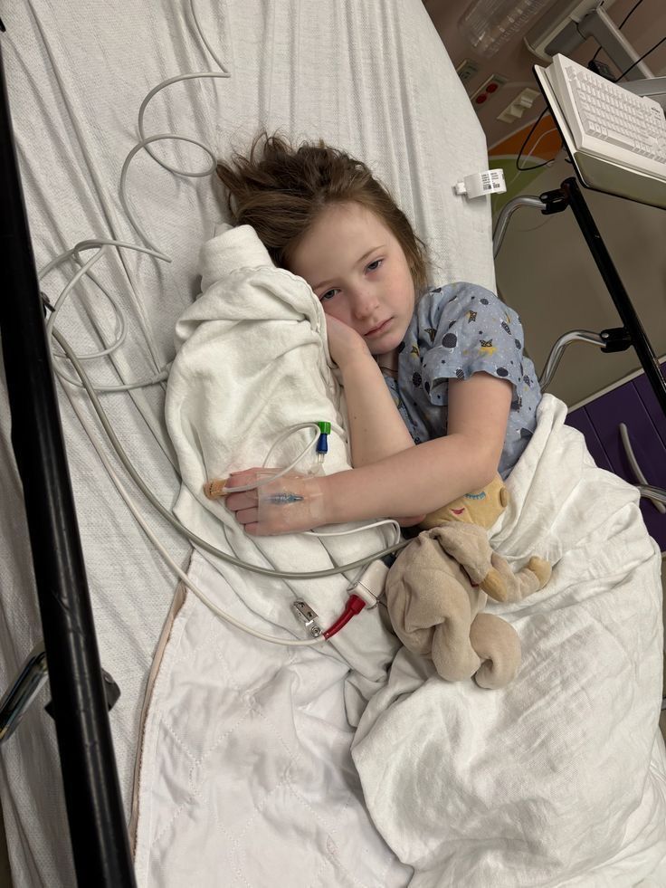 A stuffed toy lay tucked close to her side, barely held, but not let go. In a room filled with machines and unfamiliar sounds, that small object became something important.