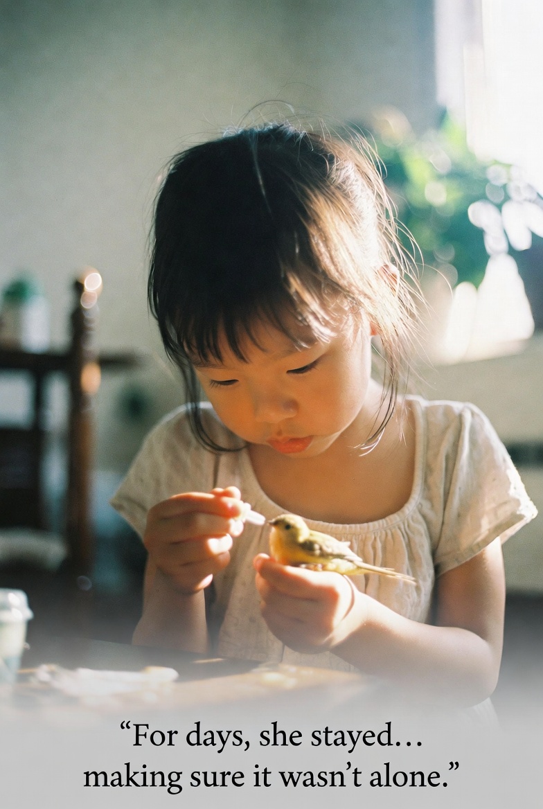 For days, she cared for it — feeding it gently, watching over it, and speaking to it in soft, reassuring whispers, as though her voice alone could give it strength. She didn’t rush the process or expect anything in return. She simply stayed, patient and present.