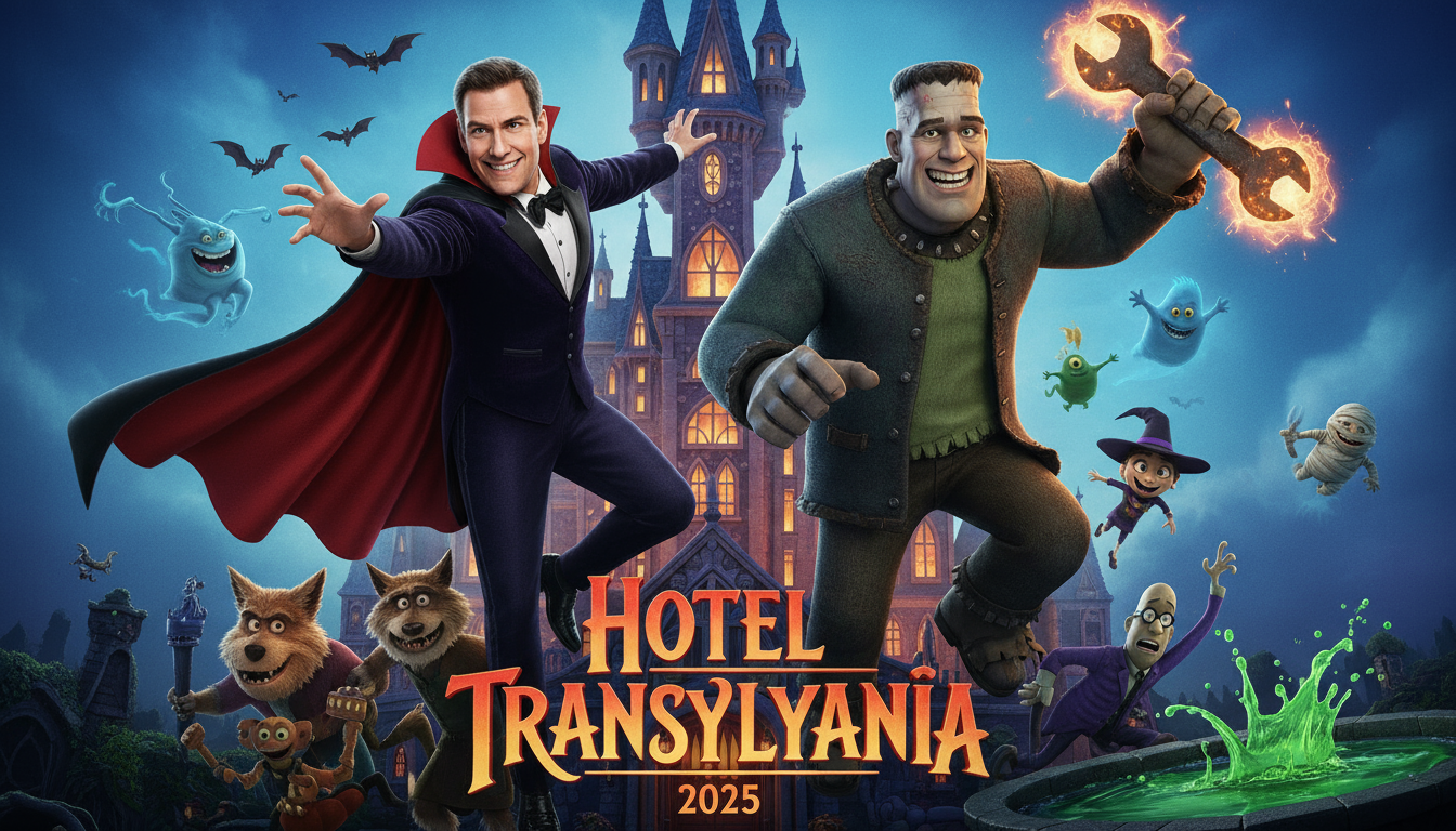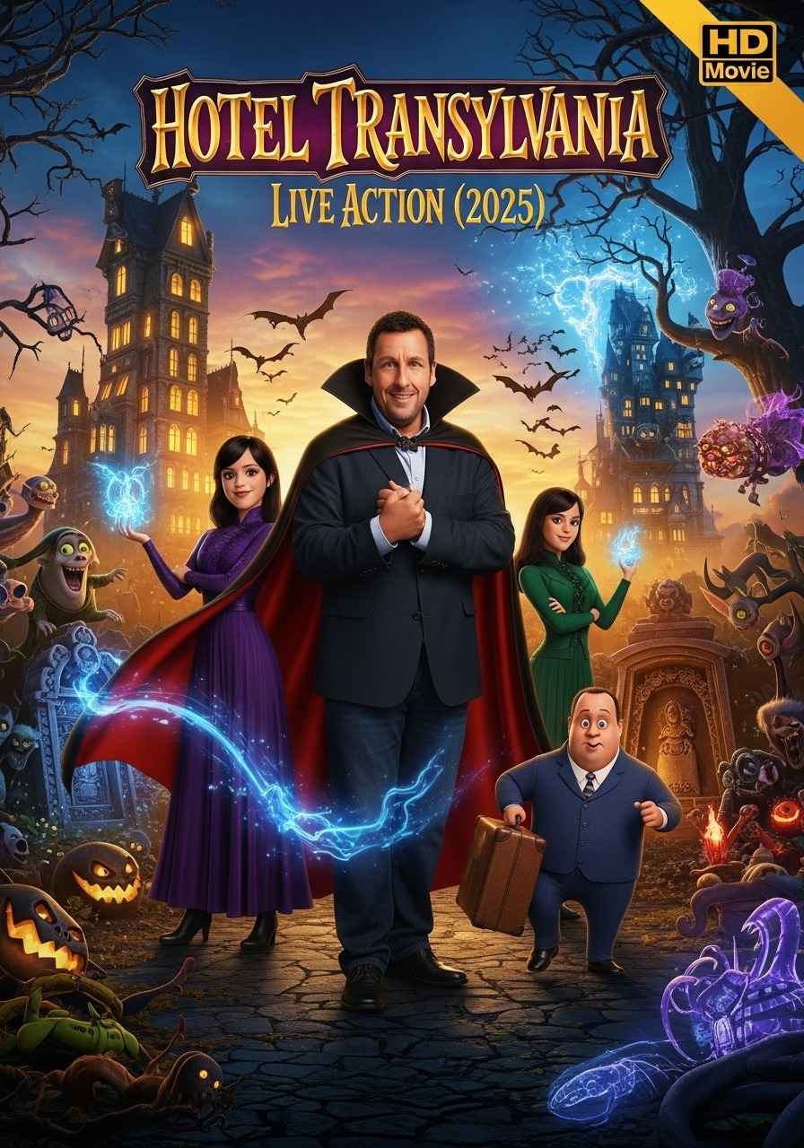 Adam Sandler reprises his role as Dracula, a father who has grown wiser yet no less protective, balancing his devotion to his daughter Mavis with the challenges of running a hotel that now bridges monsters and humans. Alongside him, Selena Gomez returns as Mavis, bringing charm, courage, and a curiosity about the world outside the hotel walls. The live-action format allows audiences to see every intricate detail of the hotel’s towering spires, enchanted halls, and whimsical monster suites, making the magical world palpably real.