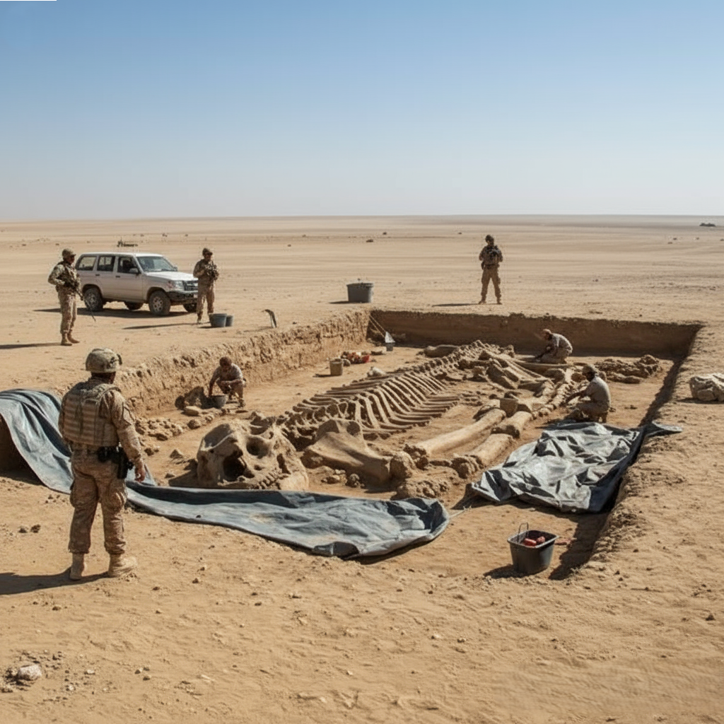 💀BREAKING DISCOVERY: Giant Skeleton Unearthed in Desert — Military Rushes to Secure Site! 🏜️