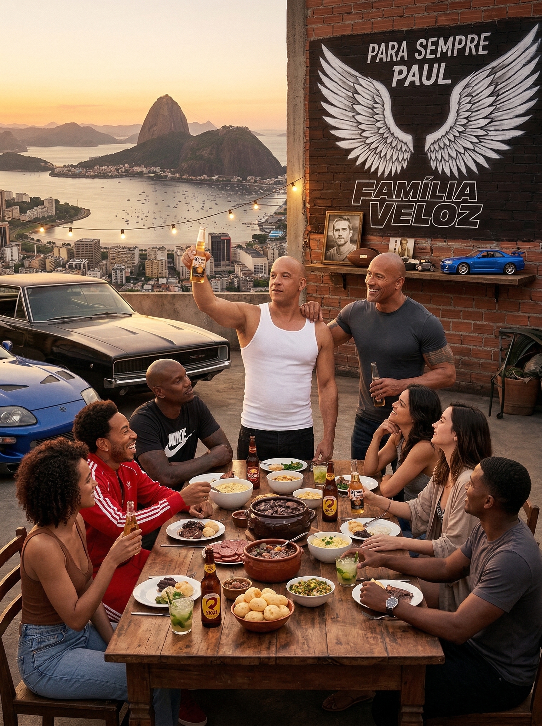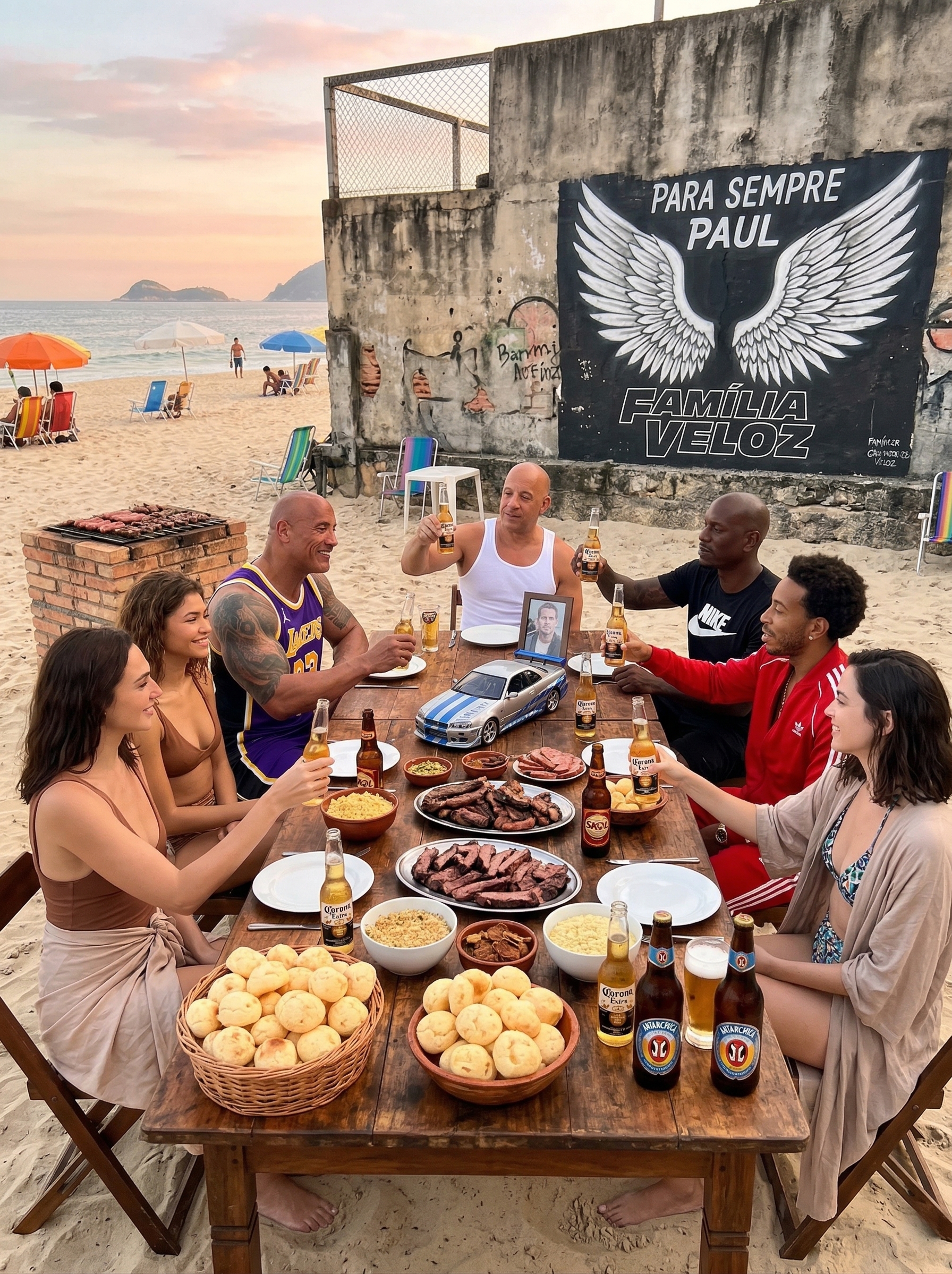 On a quiet beach at sunset, far away from the chaos of engines, streets, and endless battles, a group gathers around a simple wooden table. No speed. No danger. Just laughter, food, and the rare peace theyâve fought so hard to earn.