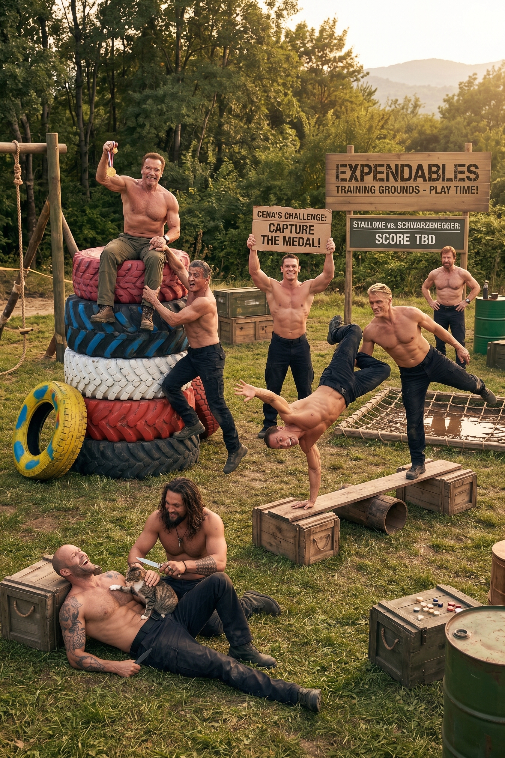 On a tropical beach, the team gathers not as soldiersābut as brothers. Jokes fly, drinks are raised, and for once, the only competition is a friendly game under the sunset sky. Muscles built for war now build sandcastles, and hands that once held weapons now hold moments that actually matter.