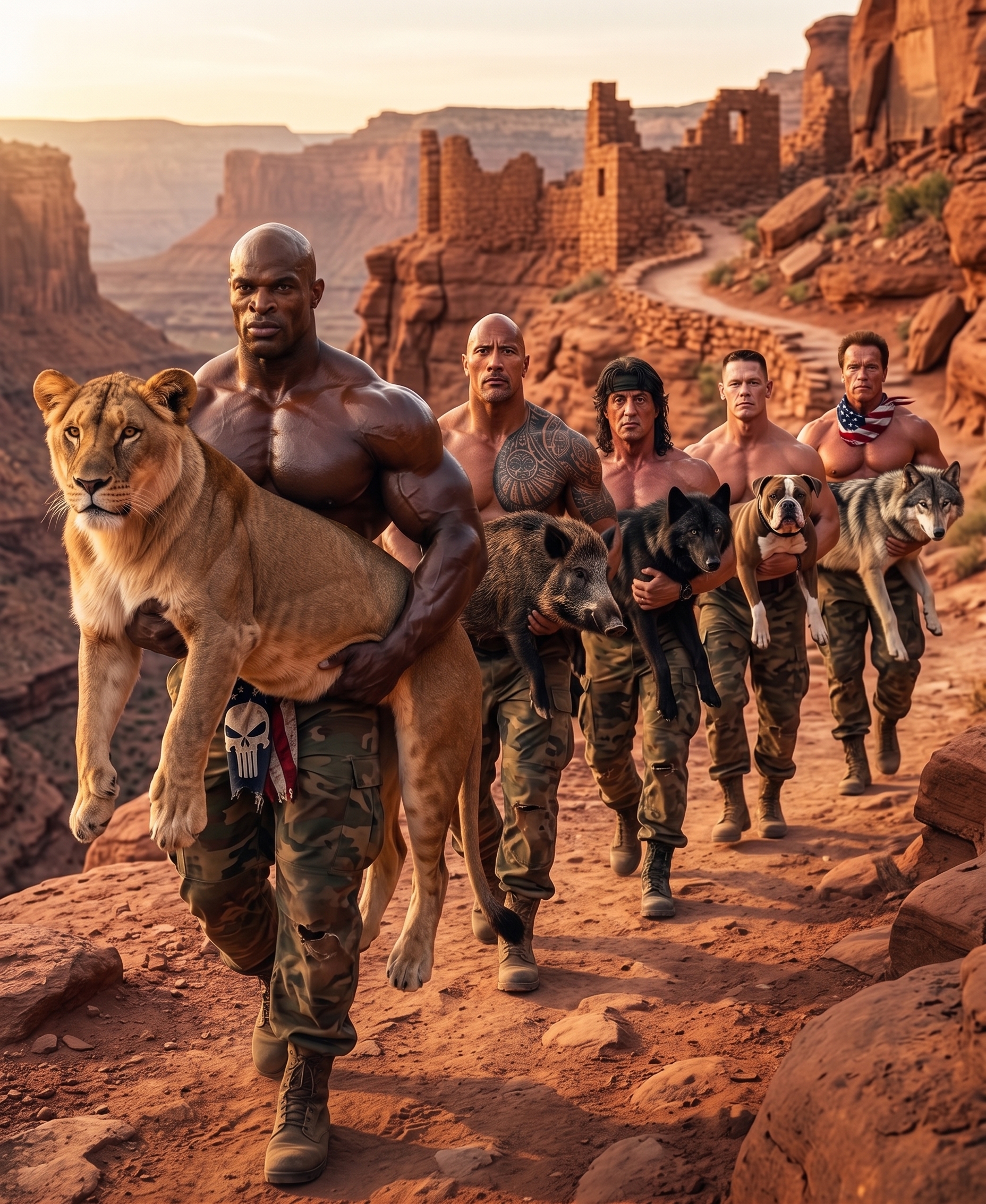 Across a harsh desert canyon, where every step is a battle against nature itself, a group of warriors moves forward—not with weapons raised, but with lives in their arms. Not enemies… but creatures that depend on them.