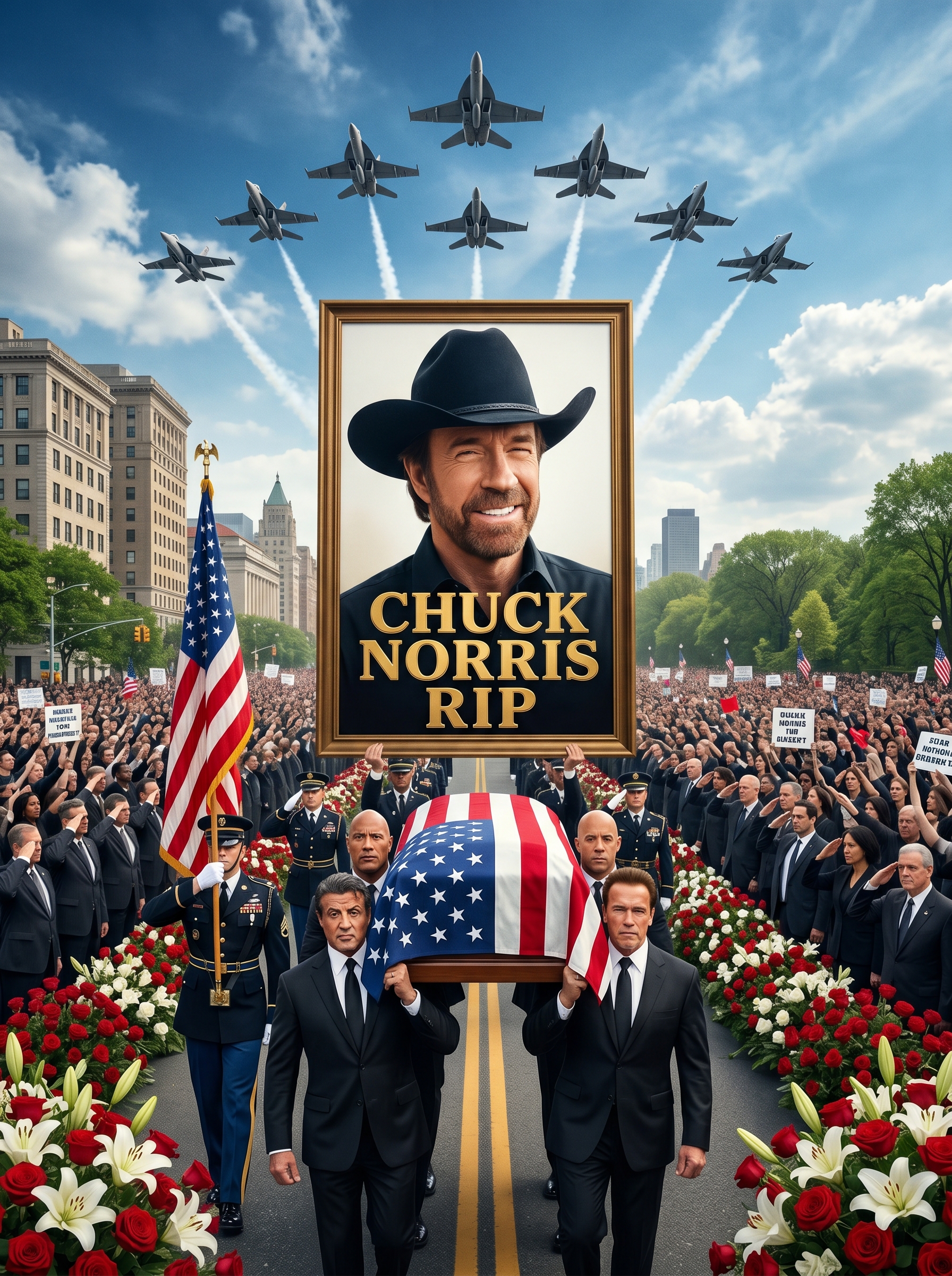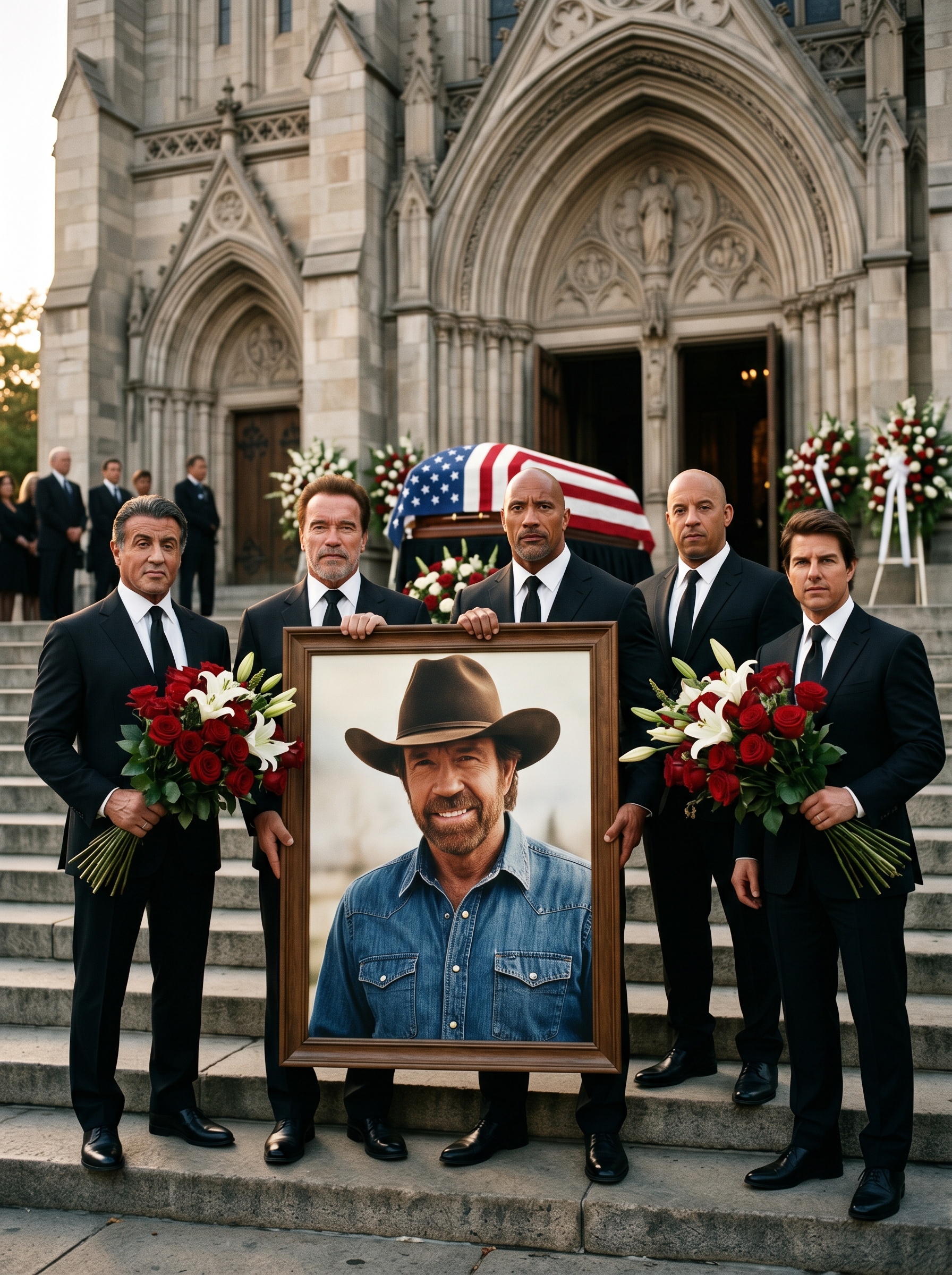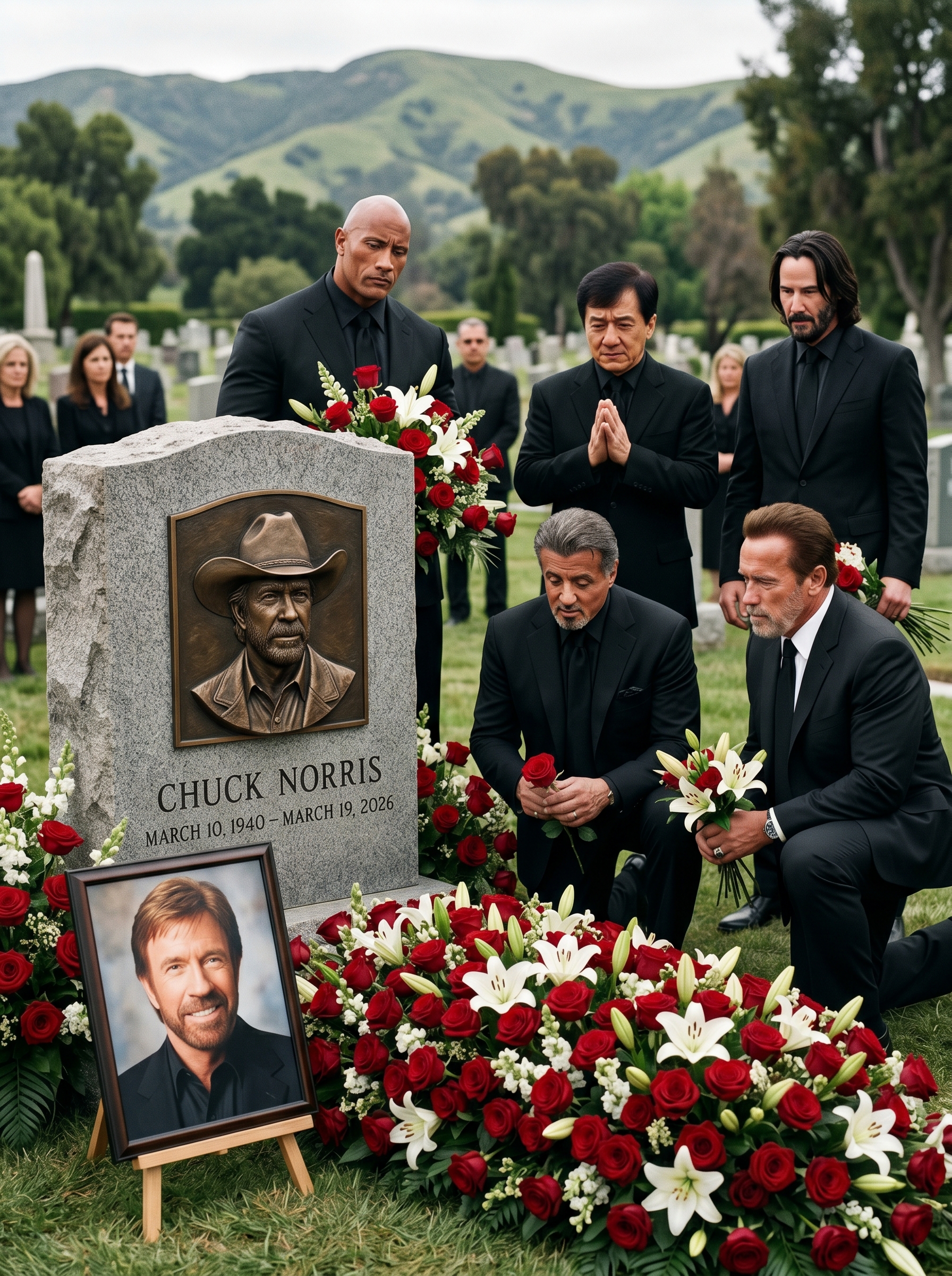 As night fell completely and the last of the helicopters banked away into the darkness, one final image lingered in everyone’s mind: the perfect ring of strength and sorrow standing beneath the stars. No camera captured the full depth of what happened in that silence. Only those inside the circle truly knew. And they smiled—not with sadness, but with the quiet certainty that the legacy had multiplied.