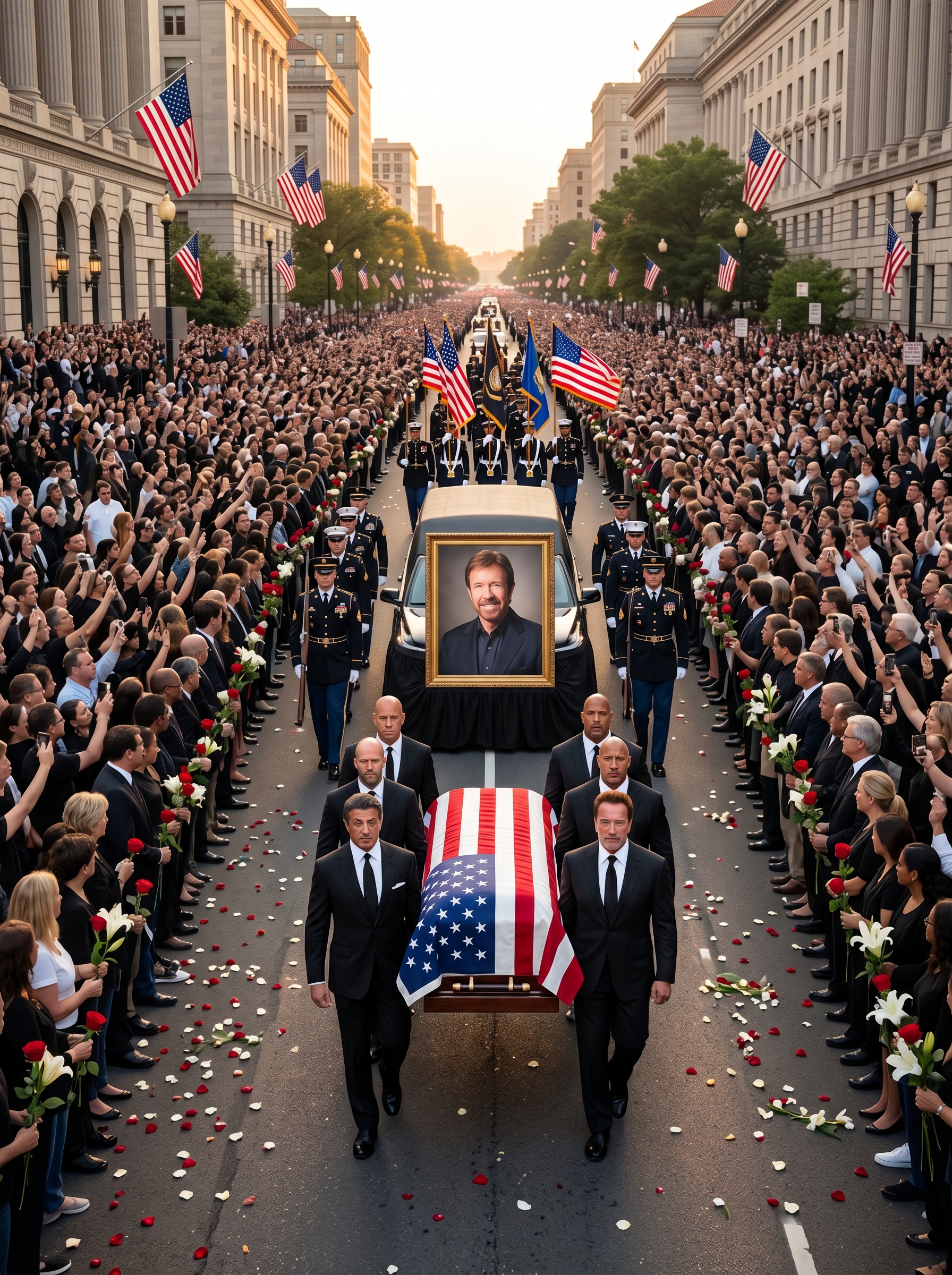 As the golden light from the statue intensified, something shifted in the air. One by one, the veteran fighters dropped to one knee—not in defeat, but in pure, reverent respect. The gesture rippled through the entire assembly like a wave. In that single, wordless moment, every person present understood the same truth: the fight never truly ends. It only changes hands. The spirit that had once delivered devastating roundhouse kicks now moved invisibly among them. It had not vanished with retirement or age. Instead, it had become the wind that pushes every new kick forward, the echo that spins inside every child’s dream, the invisible force that refuses to let go. Veterans later described it as an ancient energy—quiet, fierce, unstoppable—moving through their bodies, turning decades of pain into something far greater: pure, unbreakable power.