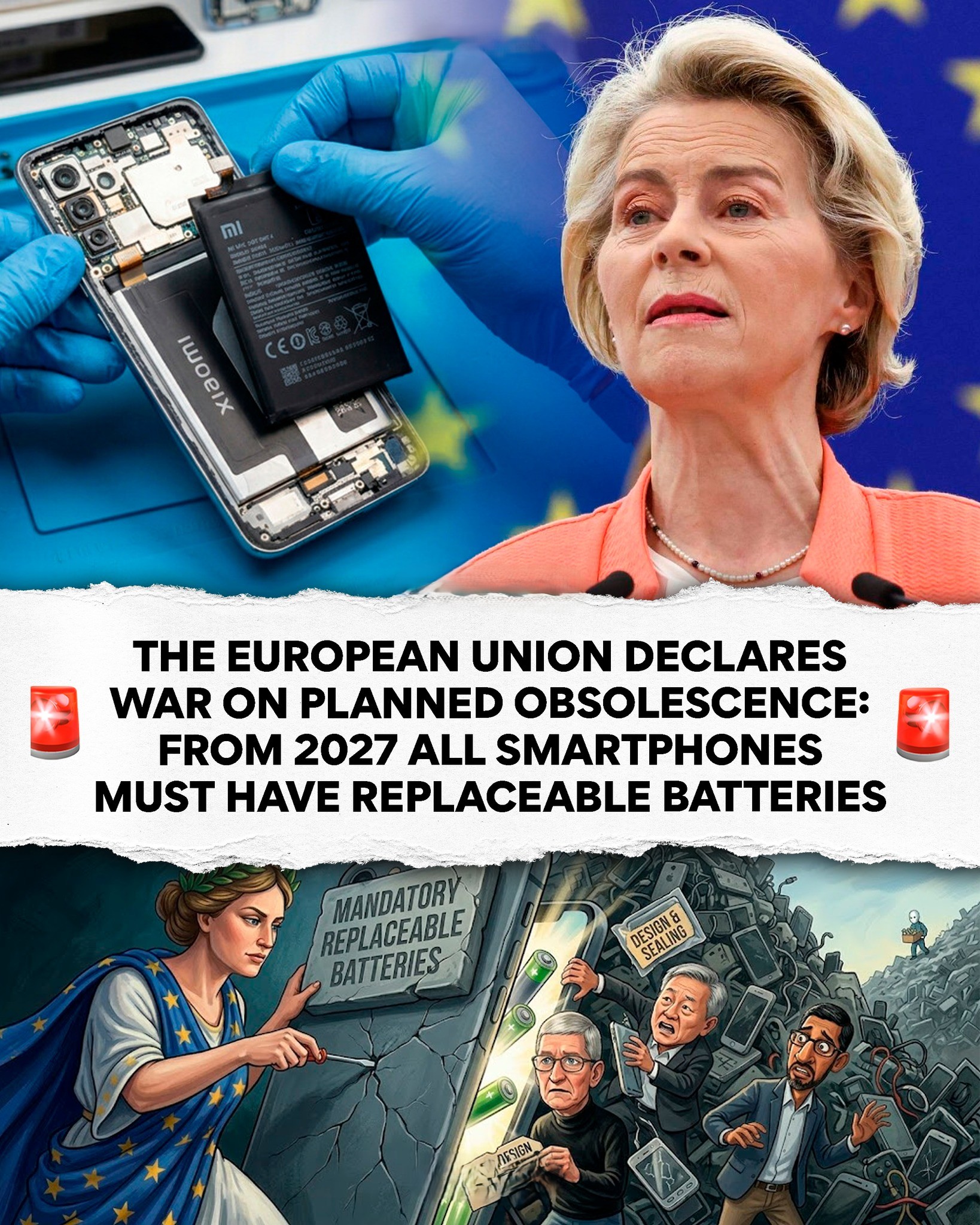 The date is set. On February 18, 2027, Article 11 of the EU Batteries Regulation enters into force, approved by the European Parliament with 587 votes in favor, 9 against, and 20 abstentions. From that day, any smartphone, tablet, or digital camera sold in Europe must allow the user to replace the battery at home.