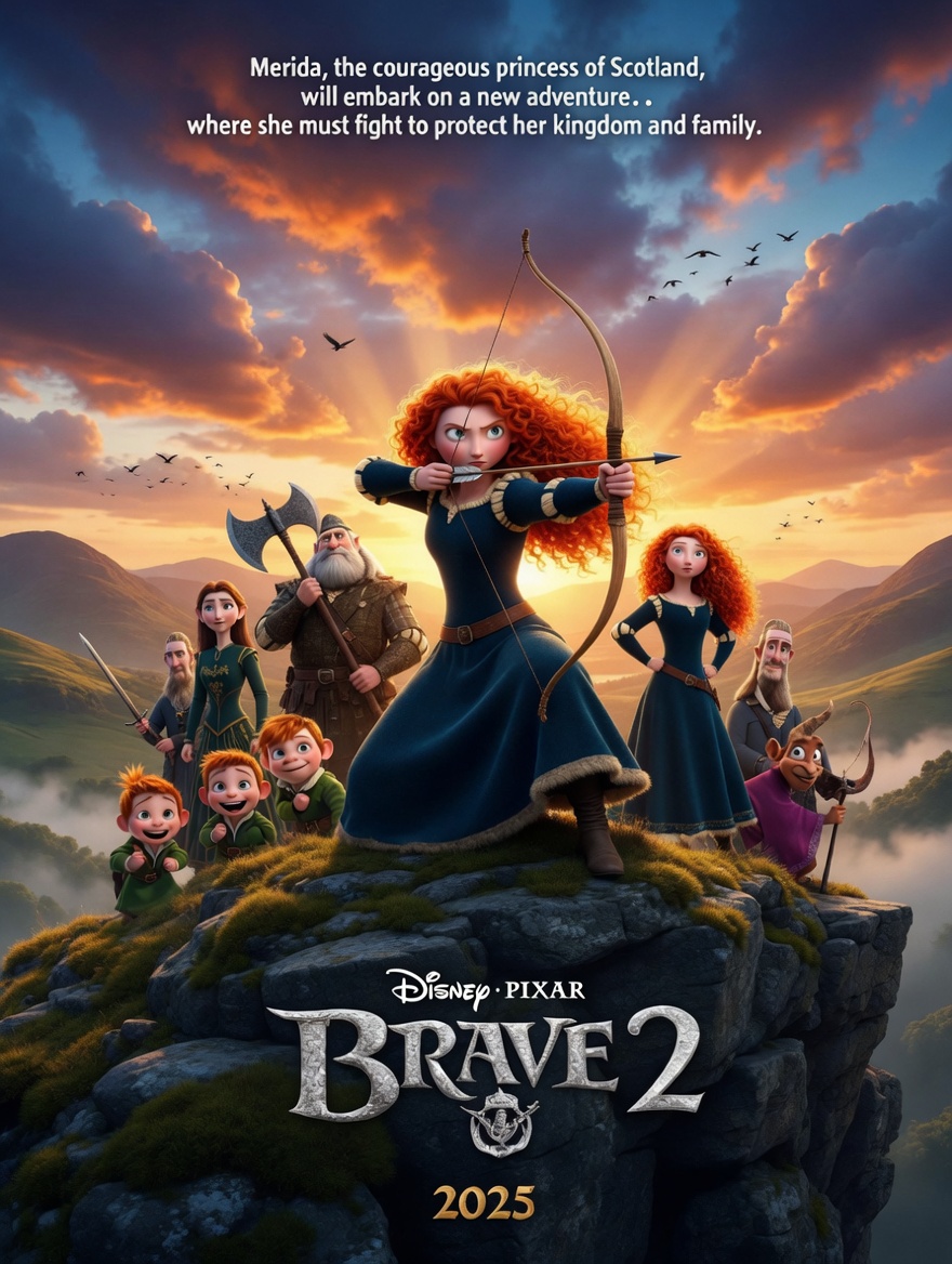 “Brave 2” returns to the Scottish highlands with a more mature, emotionally resonant continuation of Merida’s story, focusing on leadership, tradition, and the evolving relationship between destiny and choice. Rather than repeating the rebellion-versus-tradition conflict of the first film, this sequel explores what happens after change has already been made—and the responsibility that comes with it.