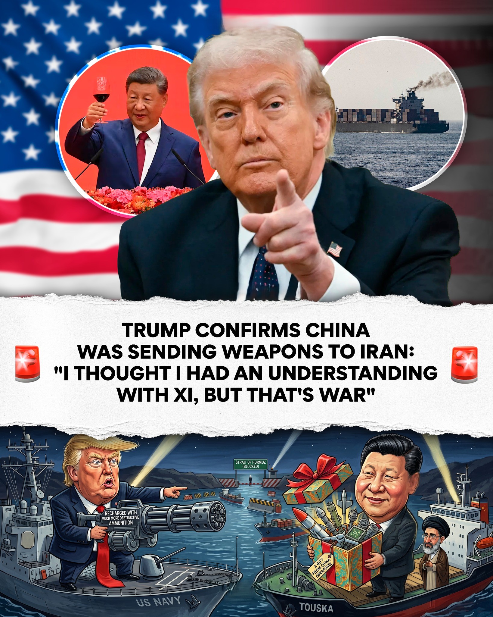 TRUMP CONFIRMS CHINA WAS SENDING WEAPONS TO IRAN DURING THE CEASEFIRE: “I THOUGHT I HAD AN UNDERSTANDING WITH XI, BUT THAT’S WAR” NT