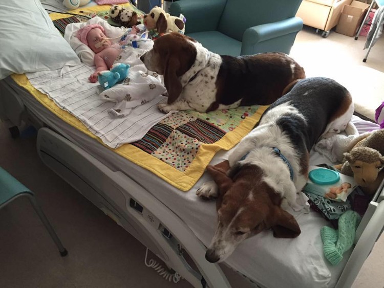 Gracie and Grumpy were far more than just pets—they were full-fledged members of the family. From the moment Nora was hospitalized, John and Mary Hall made a heartfelt decision: their daughter would never spend a moment alone. They brought the dogs to the hospital, where the two Basset Hounds lay beside Nora’s crib, providing warmth and calm that only loyal dogs can offer.