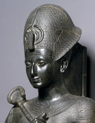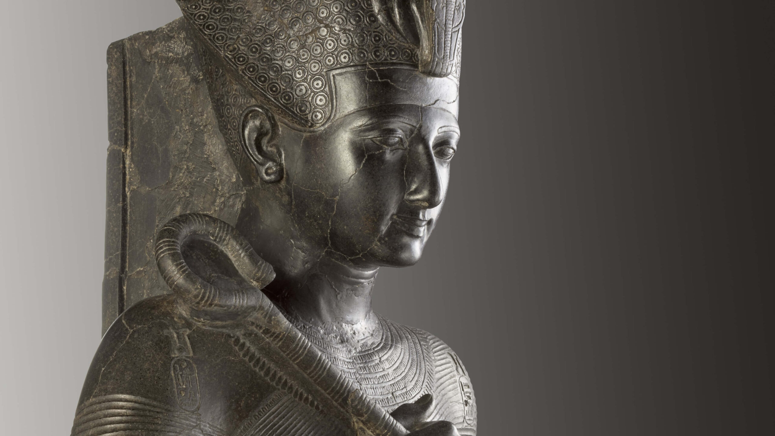 This sculpture fragment depicts King Ramesses II, one of Egypt’s most powerful and celebrated pharaohs. It was carved early in his long reign, around 1279–1213 BCE, during the 19th Dynasty of the New Kingdom.