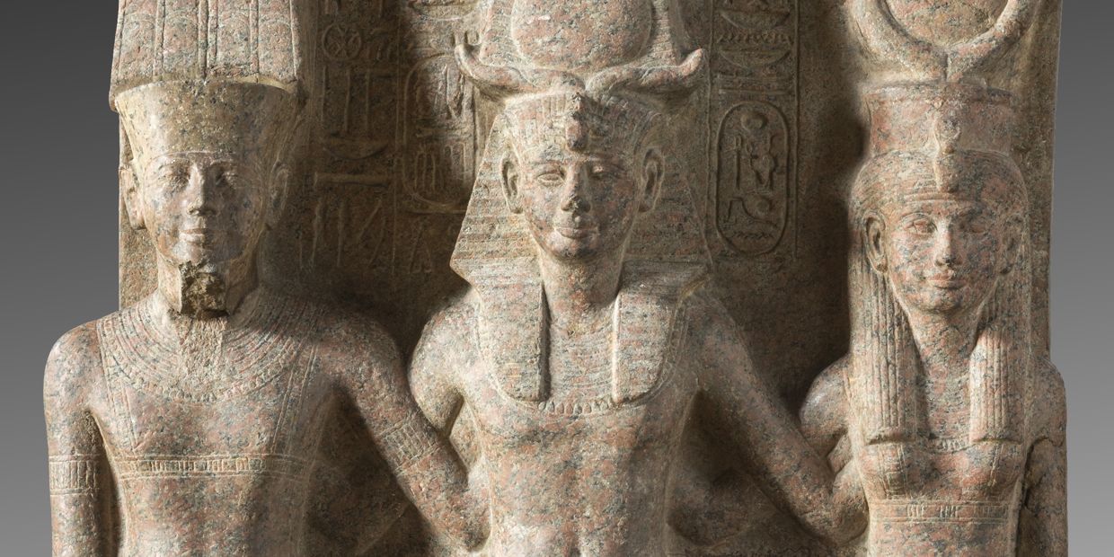 The statue of Ramesses II with Amun and Hathor is housed in the Museo Egizio, Turin. Ramesses II (c. 1303–1213 BCE), widely known as “Ramesses the Great,” is one of Egypt’s most renowned pharaohs. To the ancient Egyptians, he was called Userma’atre Setepenre, meaning “Keeper of Harmony and Balance, Strong in Right, Elect of Ra.”