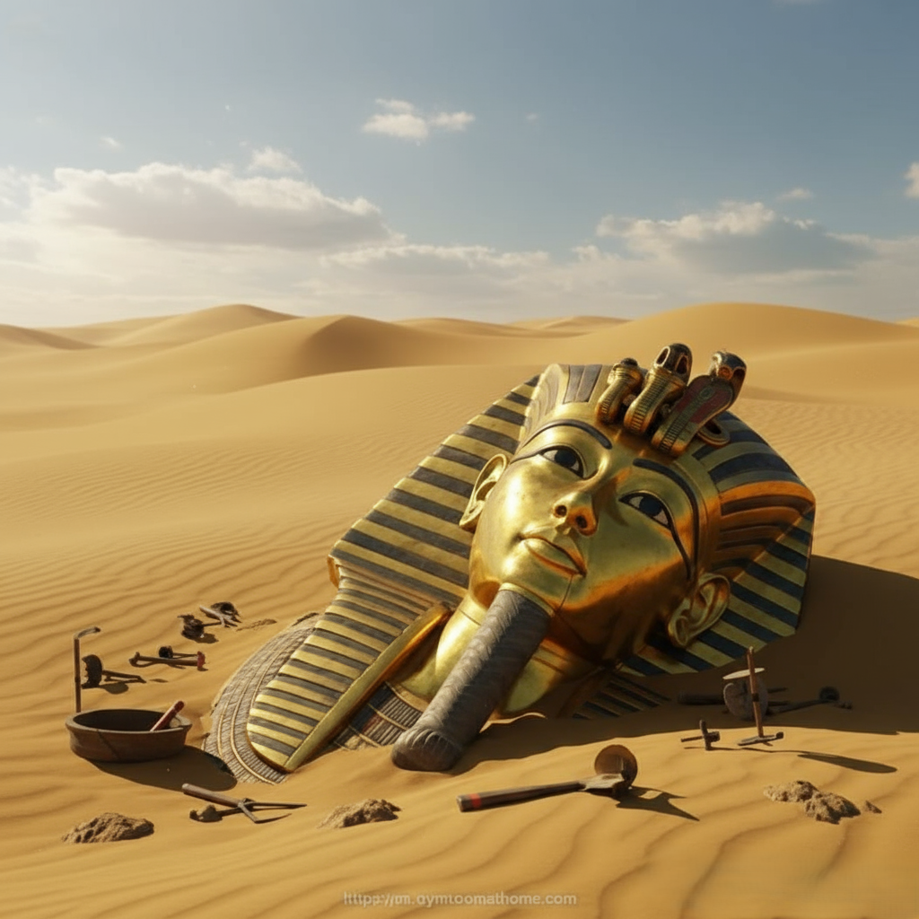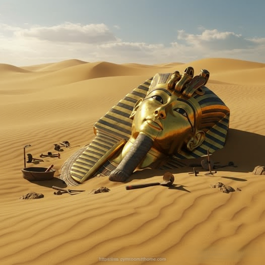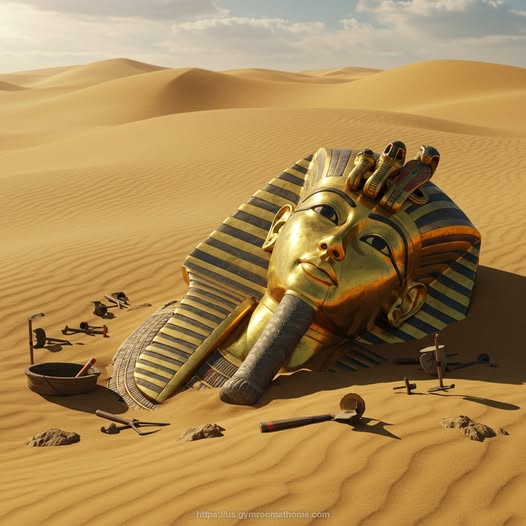 A team of archaeologists conducting an excavation in a remote section of the Egyptian desert has uncovered what appears to be an enormous golden pharaoh mask buried under layers of sand and stone. Early measurements suggest the artifact stands over three meters tall and weighs several hundred kilograms, crafted from a rare alloy of gold and copper unknown in the region’s ancient metallurgical record.