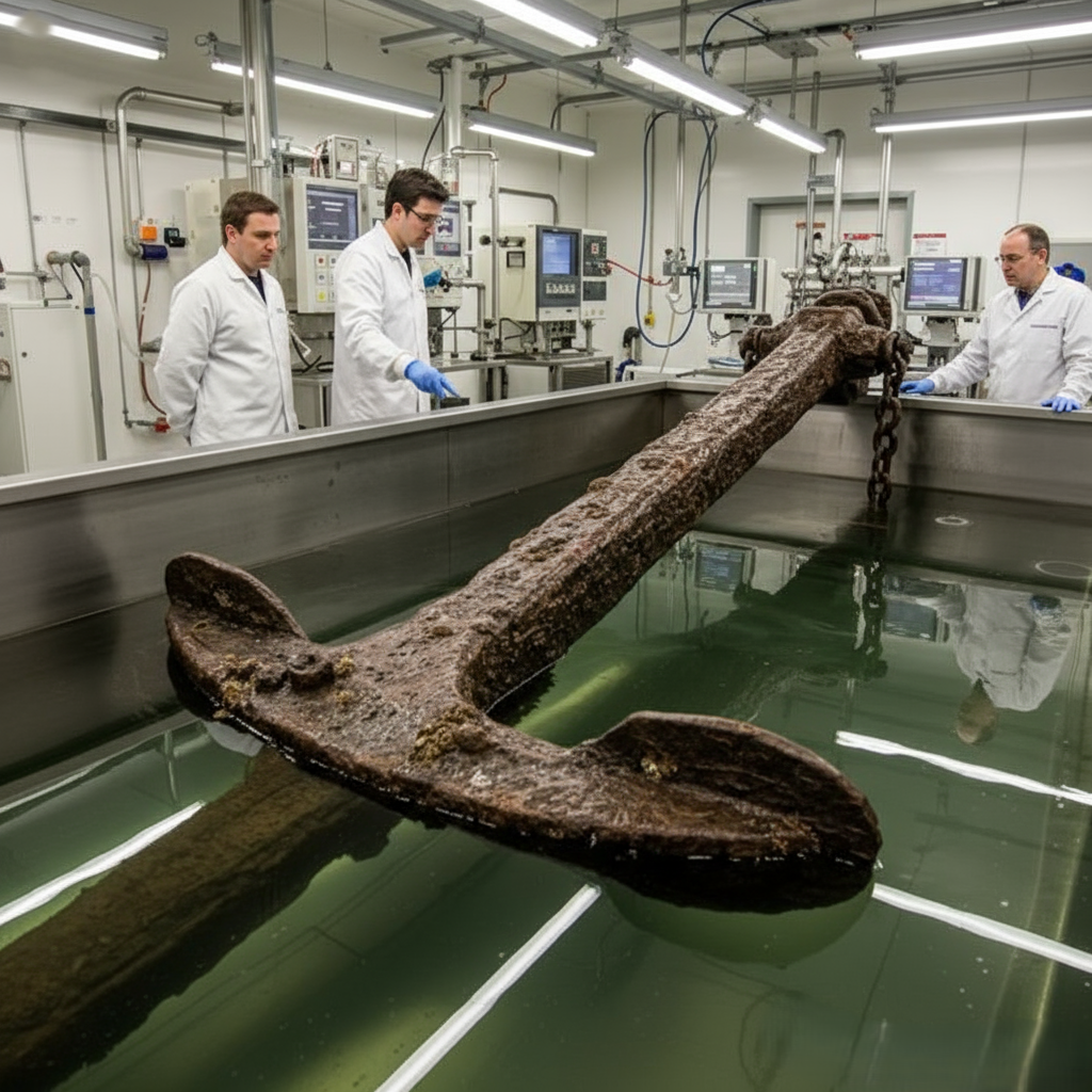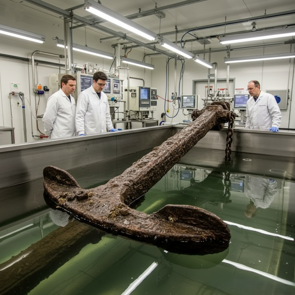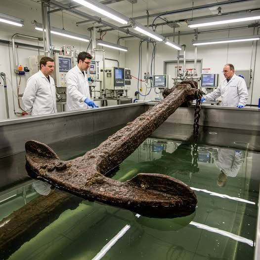A team of marine archaeologists and deep-sea engineers has recovered what experts are calling one of the most perplexing discoveries in maritime history — a colossal ancient anchor retrieved from the ocean floor at a depth exceeding 4,000 meters. The artifact, now housed under strict security in a government research facility, has drawn the attention of historians, scientists, and even defense officials. Early metallurgical analysis reveals a composition far superior to any known pre-industrial material, with purity levels and structural density suggesting a technology centuries, perhaps millennia, ahead of its time.