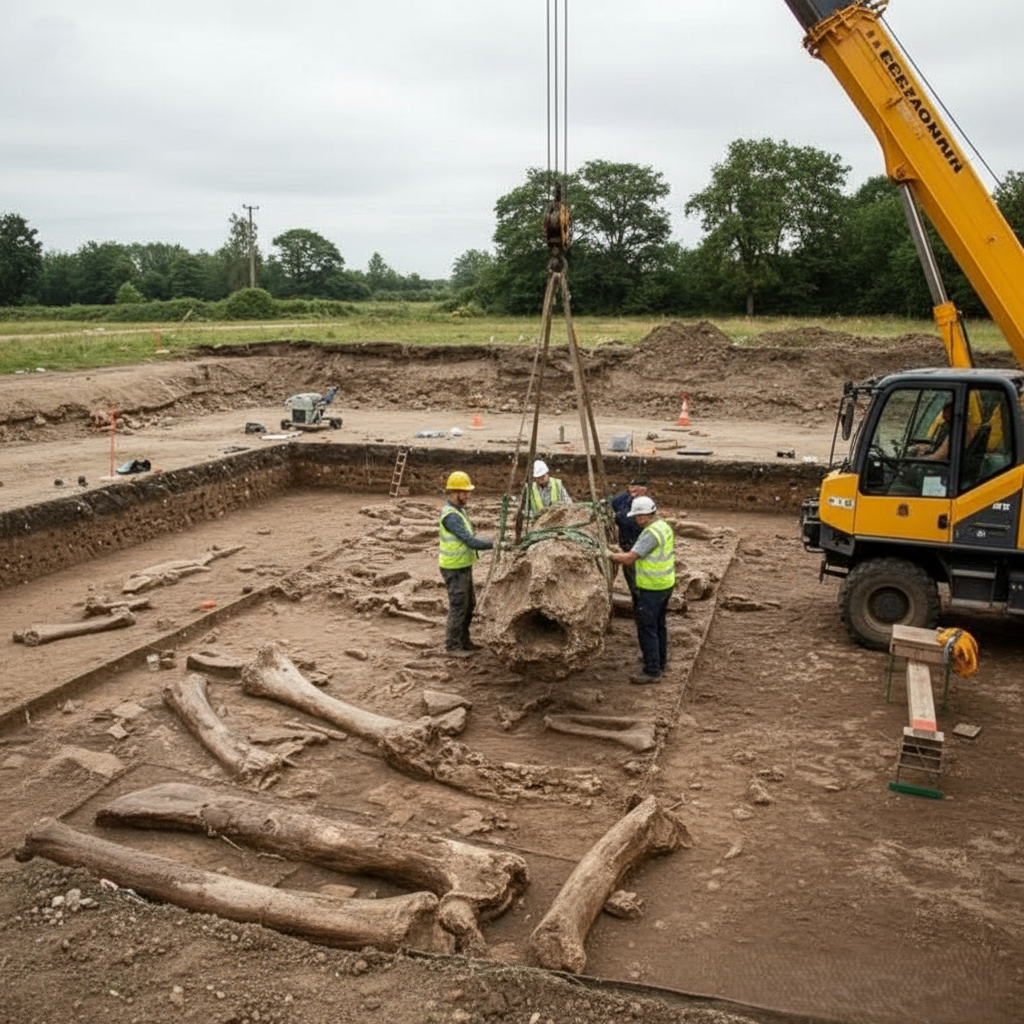 A remote excavation site has become the epicenter of one of the most astonishing scientific controversies of the modern era. Construction workers, while digging for a regional infrastructure project, struck something that halted operations immediately — a set of bones so massive that local authorities initially mistook them for industrial debris. As excavation teams expanded the dig, they revealed what appears to be the partial skeleton of an unknown species of extraordinary scale, with individual bones stretching several meters in length and weighing hundreds of kilograms each.