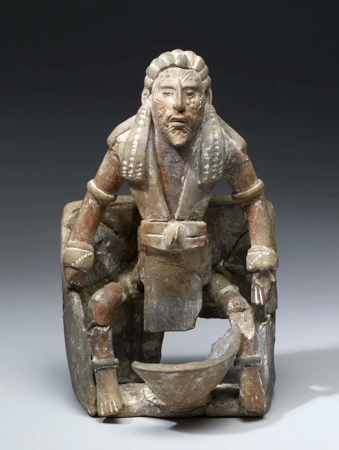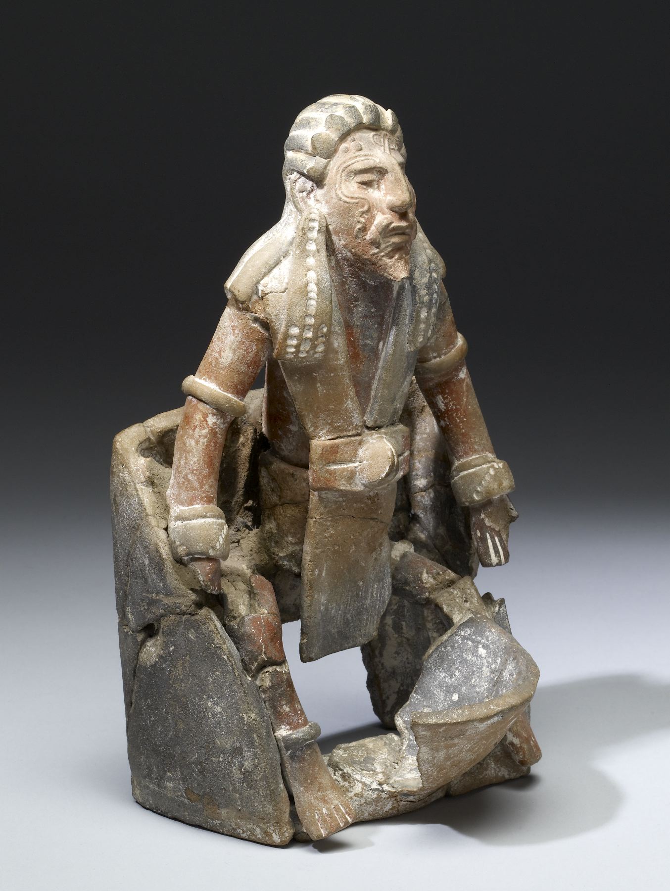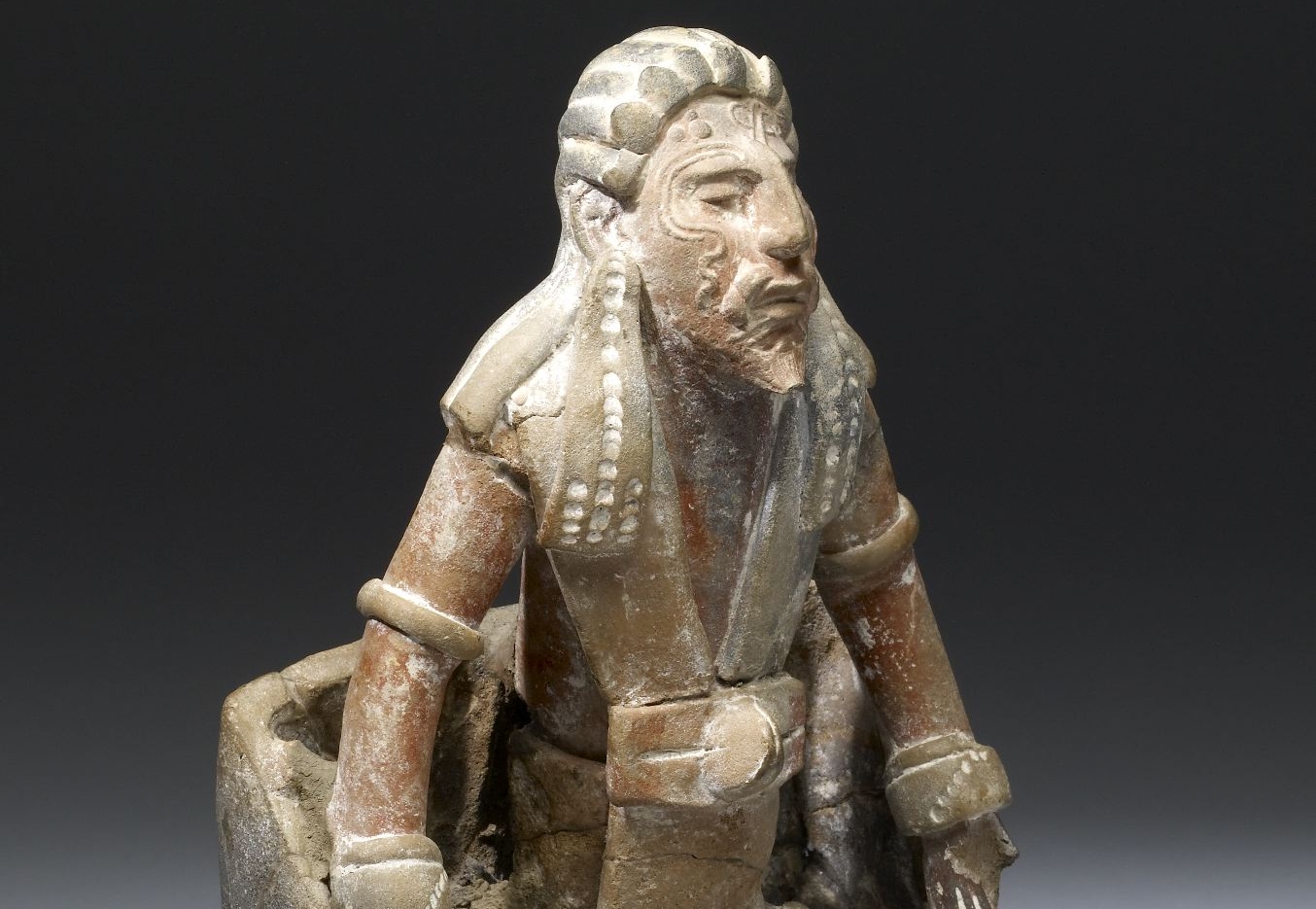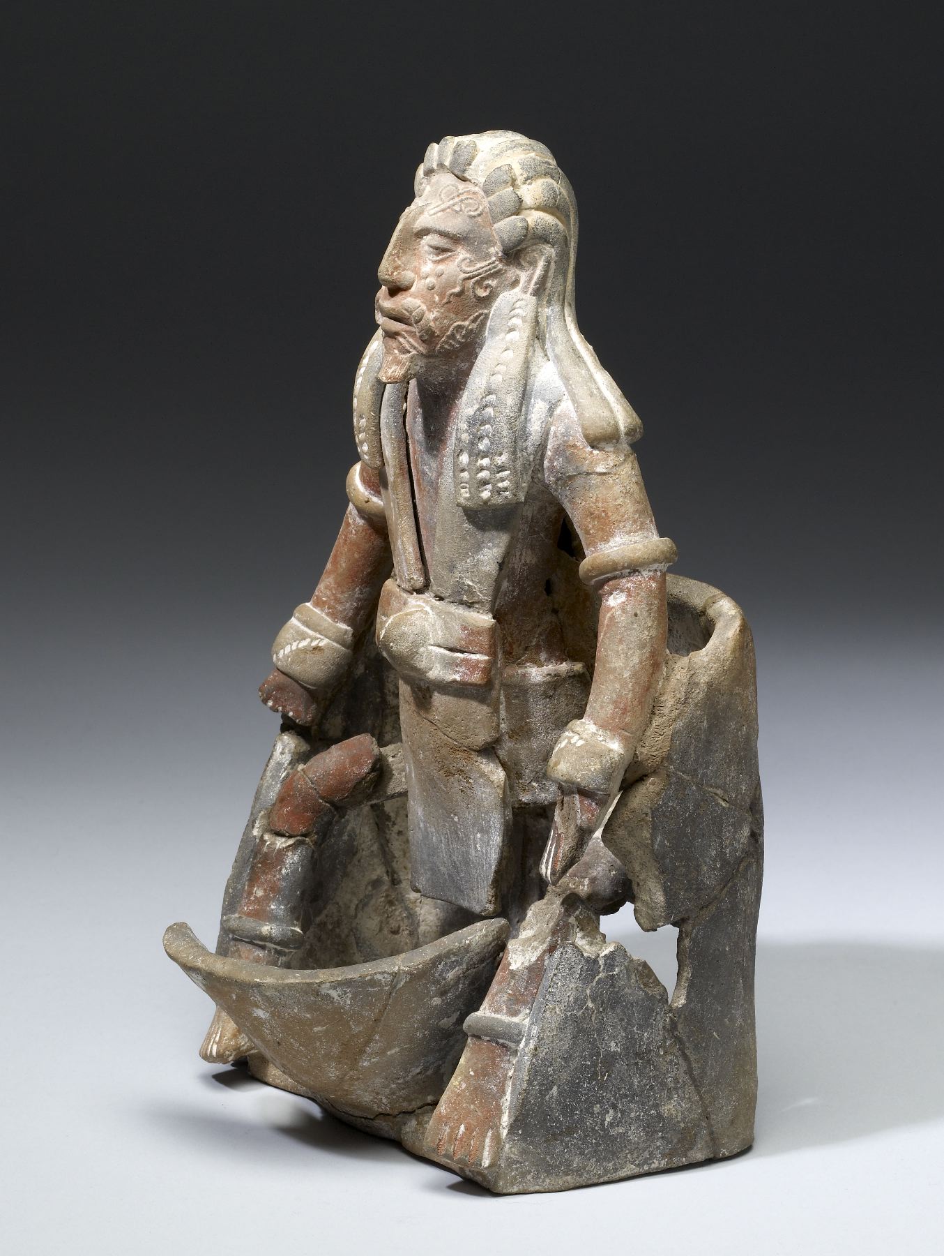 Seated male figure. Jaina Island (?) in Campeche, Mexico. Maya. 550 AD to 850 AD