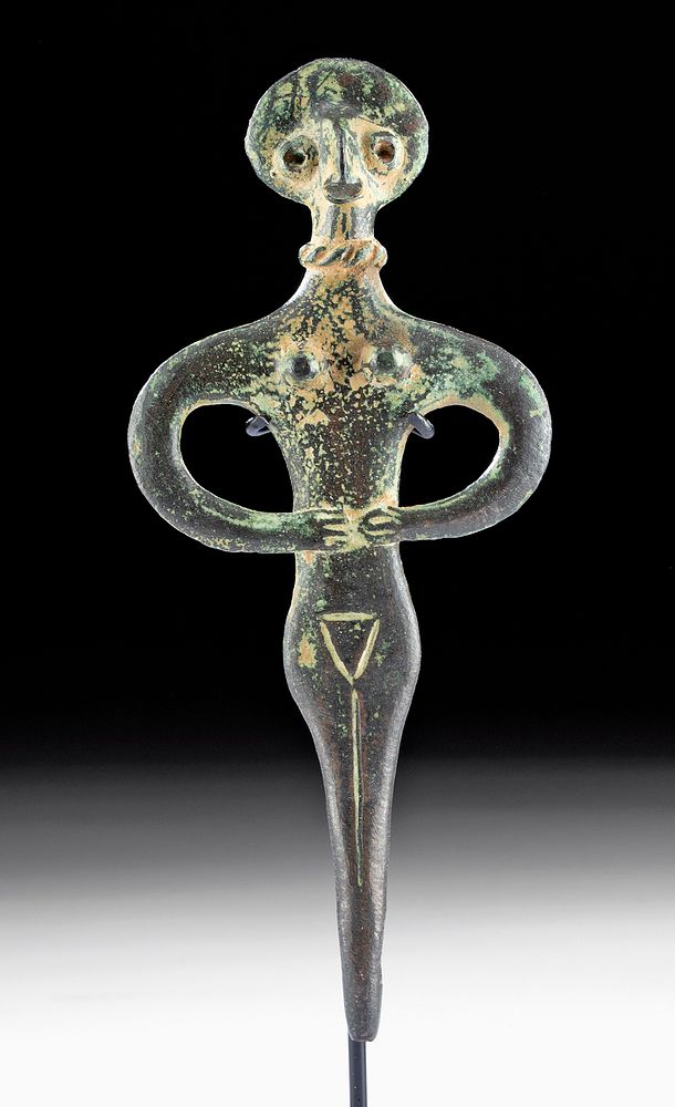 The figure’s minimal yet expressive design demonstrates the aesthetic and spiritual sensibilities of the Bronze Age in Syria, where metalworking was not only a technical achievement but also a medium for religious expression.
