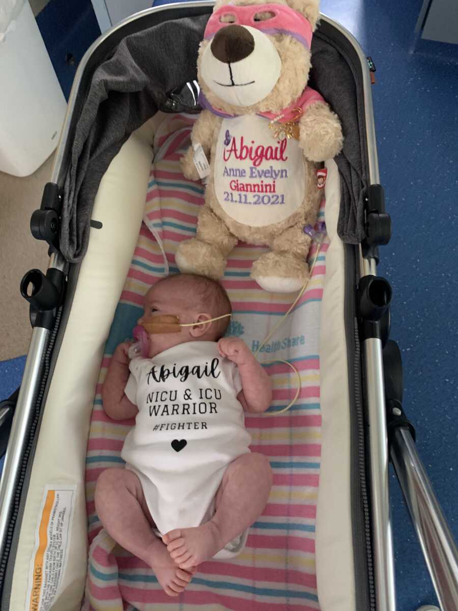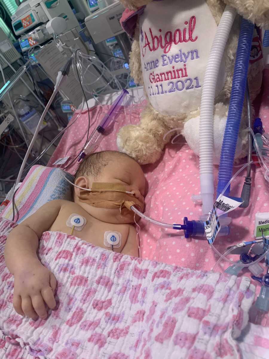 Her first few days were incredibly difficult. Abigail experienced hypoglycemia at birth and needed ventilator support by day three. She later developed late-onset sepsis, which brought further complications.