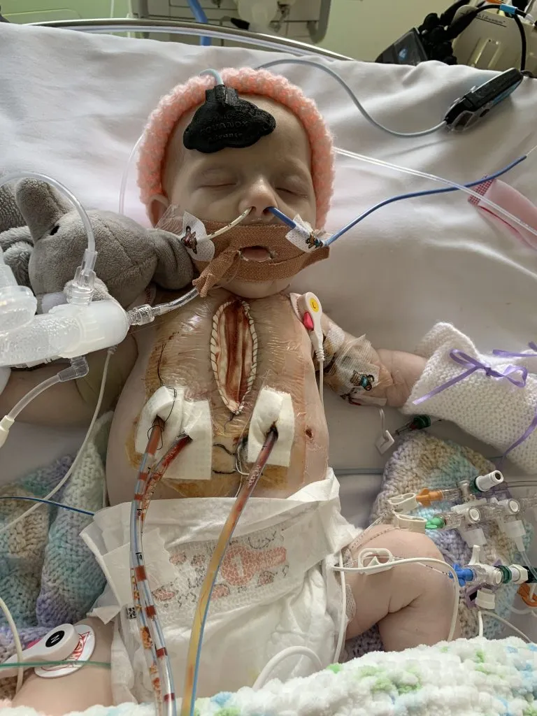 The first few days in the hospital were intense. Ellie was transferred to pediatric intensive care (PICU), where she faced pulmonary hypertension and chylothorax. She was sedated and on total parenteral nutrition (TPN) to ensure she received adequate calories. Despite these hurdles, Lauren and her family held onto hope.