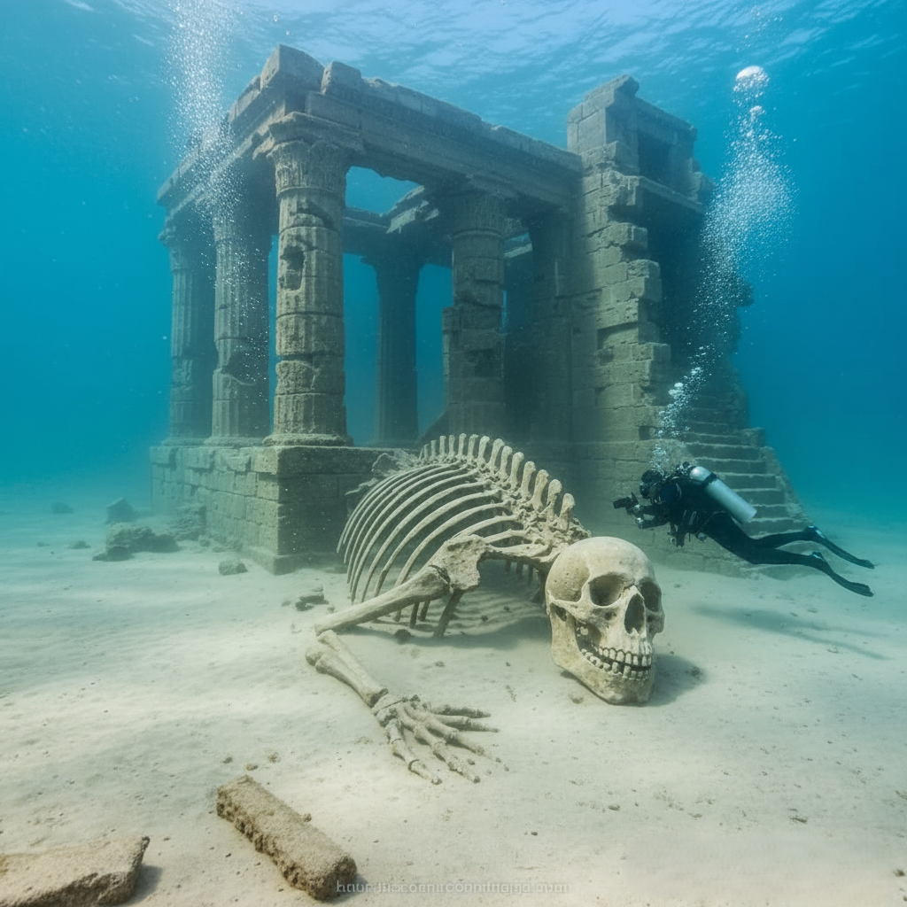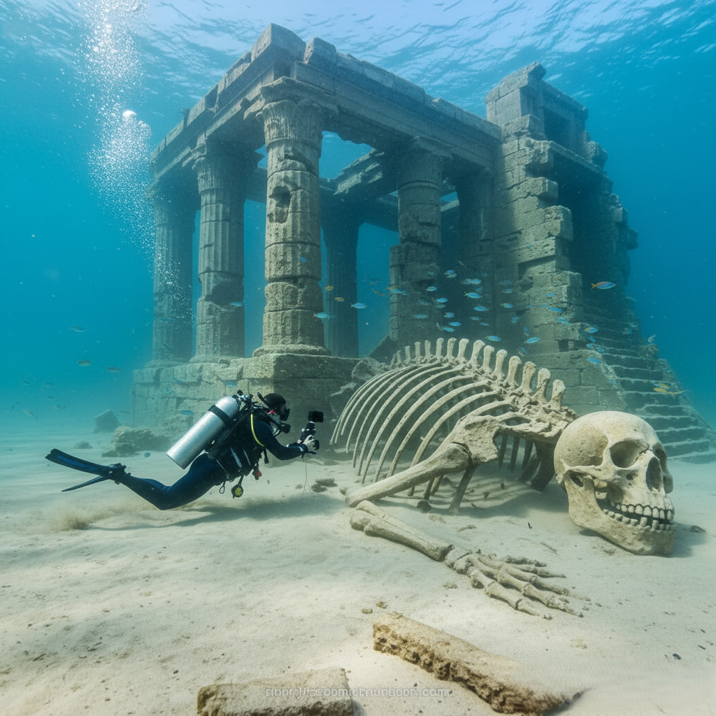 BREAKING DISCOVERY: DIVER FINDS GIANT SKELETON LYING BESIDE ANCIENT UNDERWATER TEMPLE