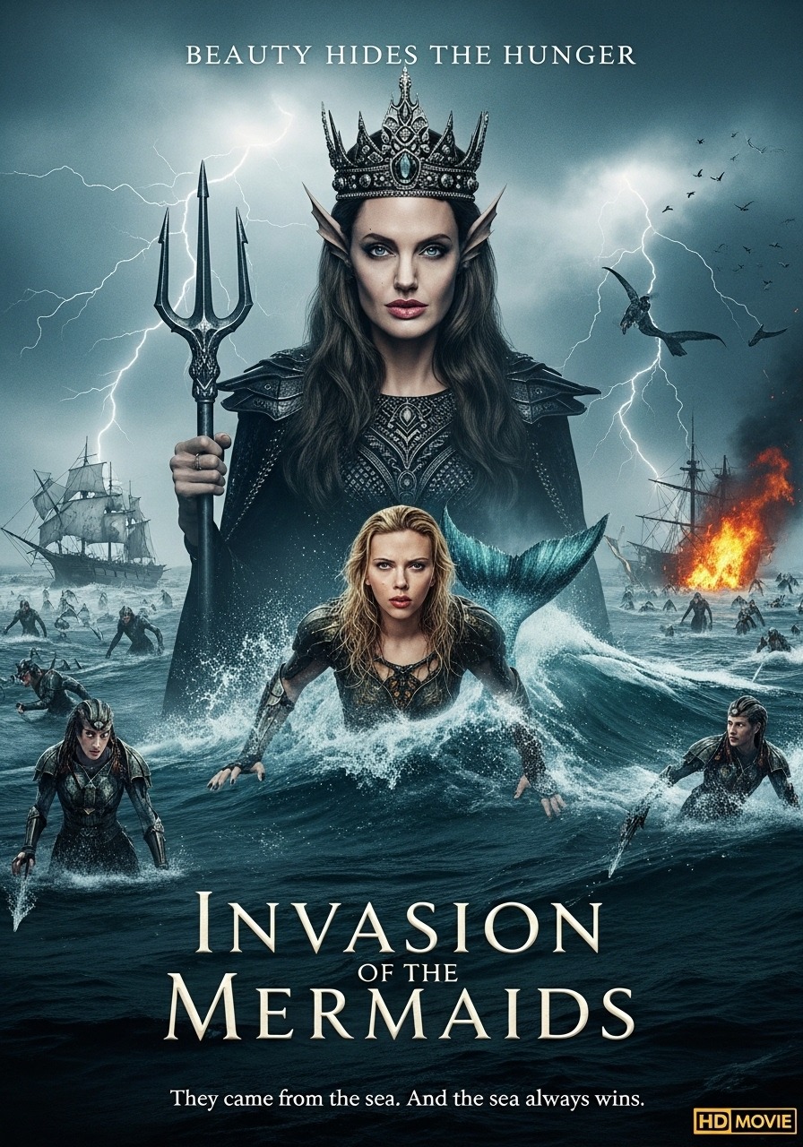 Beneath the glittering surface of the sea, something ancient awakens. For centuries, humankind has ruled the oceans — drilling, polluting, conquering. But now, the tide is turning. When entire coastal cities vanish under mysterious waves, marine biologist Dr. Elara Voss (Angelina Jolie) uncovers a truth too vast and terrifying to believe: a civilization of intelligent mermaids, long hidden beneath the abyss, is rising to reclaim their world.
