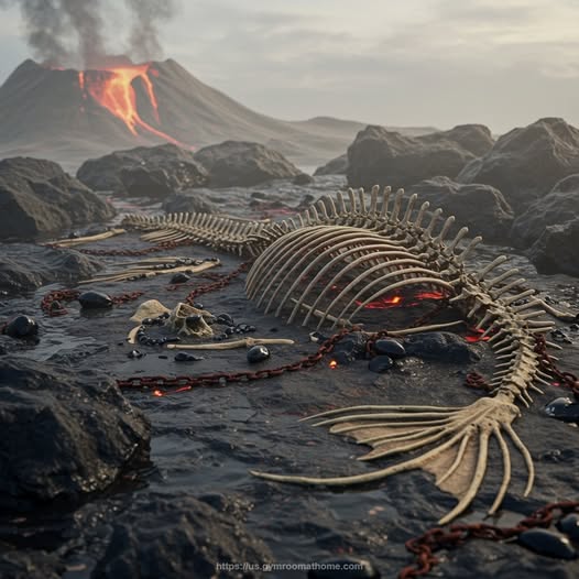 BREAKING DISCOVERY: MERMAID SKELETON FOUND NEAR ACTIVE VOLCANO—CHAINED IN LAVA
