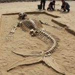 The creature’s skeletal structure displays unmistakably aquatic adaptations — elongated vertebrae resembling a tail fin, and rib formations suggesting both lungs and gills — yet the upper body remains distinctly human. Preliminary carbon dating results are inconclusive, with readings fluctuating wildly, suggesting exposure to extreme heat and magnetic interference. Local folklore has long spoken of “the Chained Siren,” a being sealed in fire to prevent it from summoning catastrophic waves and storms. Whether myth or memory, the legend now feels disturbingly tangible.