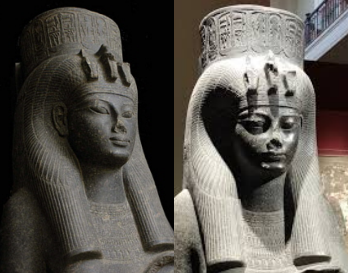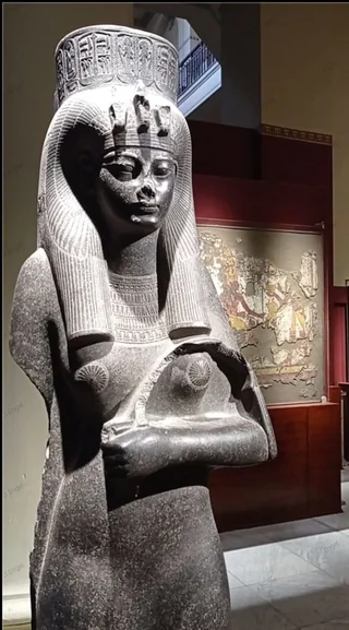 This remarkable statue represents Queen Tiye, one of the most influential royal women of ancient Egypt . Interestingly, the inscription on the back pillar was added much later by Queen Henuttawy, the wife of Pharaoh Pinudjem I (reigned c. 990–969 BCE), when the statue was reused in a later period.