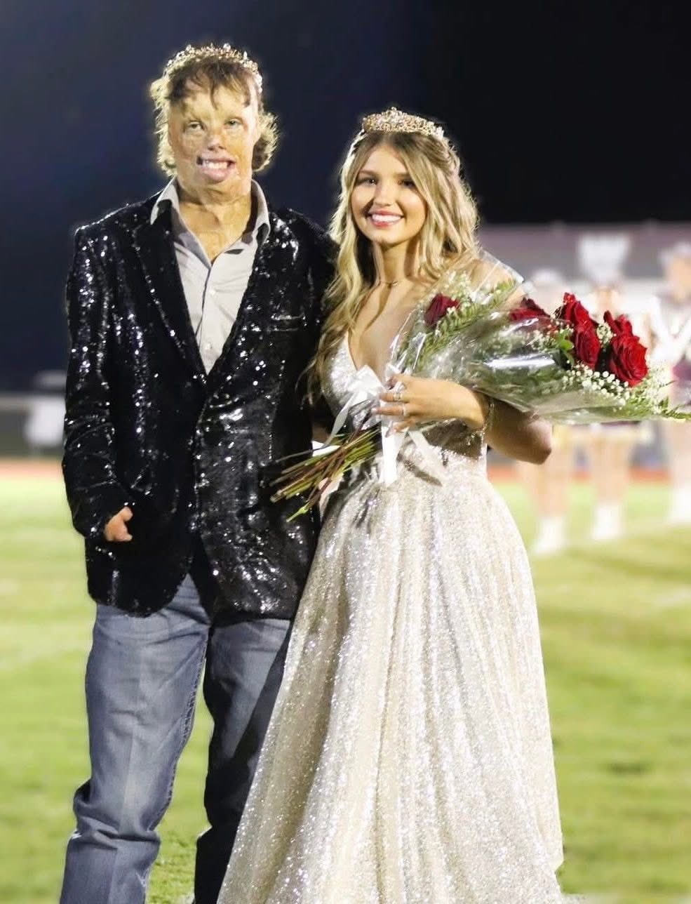 Standing beside Homecoming Queen Ashlyn Primeaux, Dylan’s radiance lit up the gym. To his parents, the moment was overwhelming. His mother whispered, “From the ashes to this… my boy made it.” His father, who had once carried him from the flames, smiled through tears — proud, humbled, and grateful for Dylan’s life.