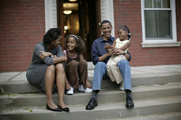 While the country debated policies, Obama sat at a small table helping his daughters with homework.