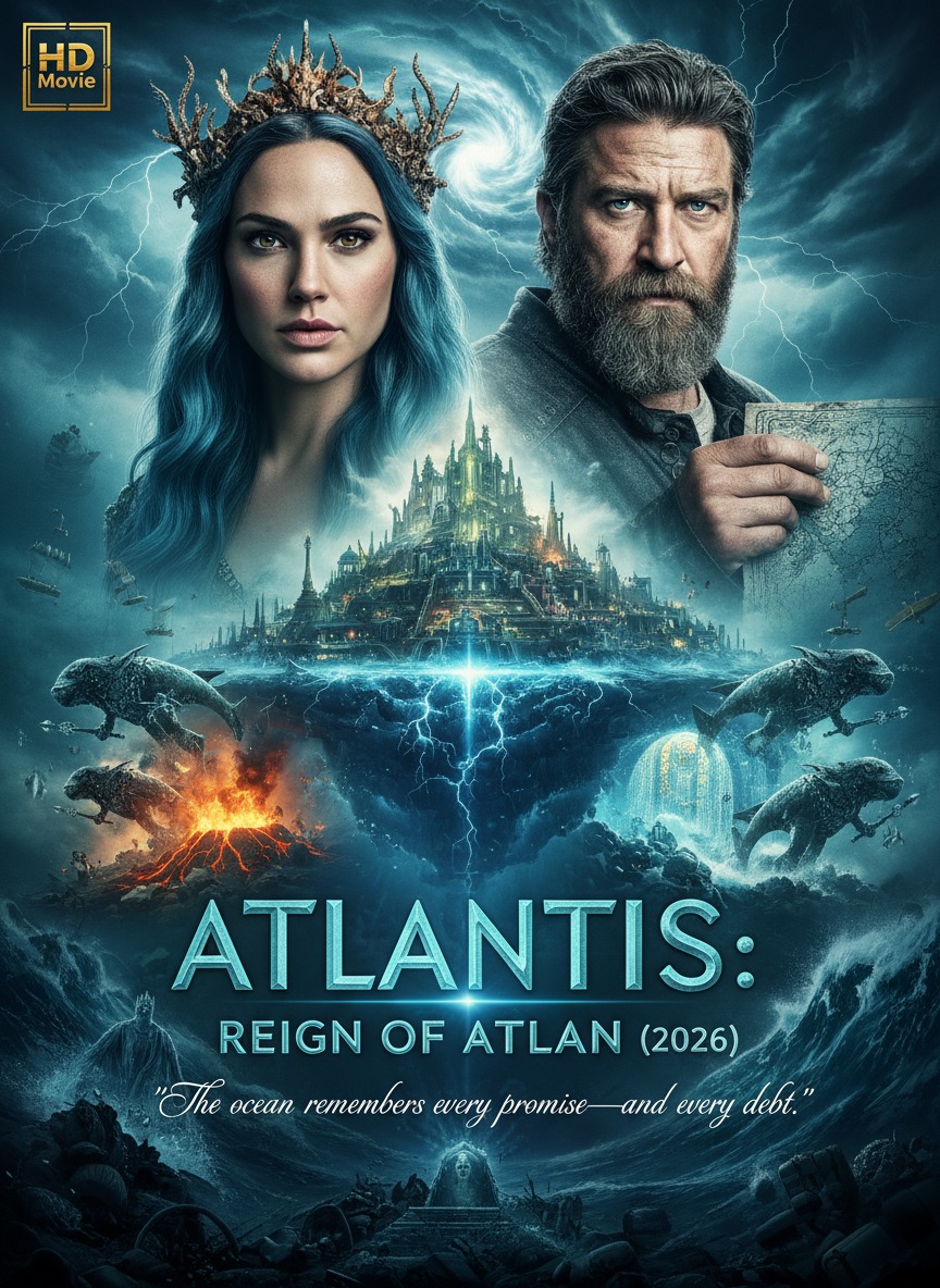 Beneath the endless blue of the ocean, a kingdom lost to legend rises again. Atlantis, a civilization of immense power and mystery, awakens from the depths, bringing with it ancient magic, forgotten technology, and a destiny that could change the fate of the world. Gerard Butler commands the screen as a fearless Atlantean warrior, torn between duty and vengeance, determined to reclaim his throne and protect his people from a relentless invading force. Alongside him, Gal Gadot embodies a queen of unmatched intelligence and strength, whose decisions could tip the balance between salvation and annihilation.